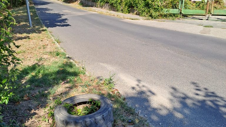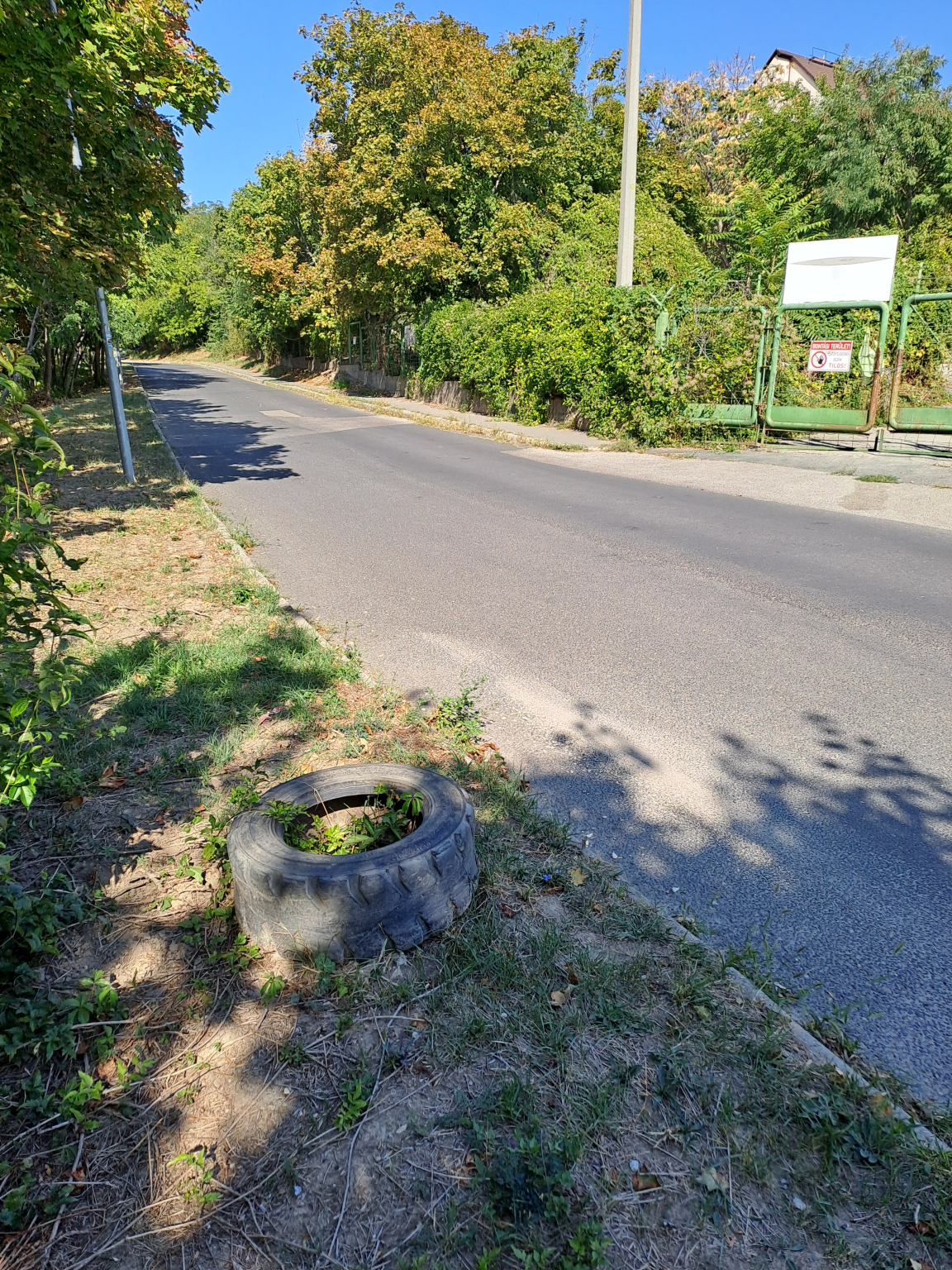 A Bp. 1124 Bürök utca 77-87. autós bejáratával szemben ottmaradt egy 10-20 kg-os gumiabroncs, amikor a gumis cég elköltözött a volt önkormányzati telephelyről.