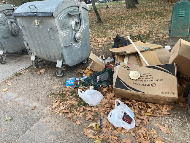 A jelentős mennyiségű (papír)hulladék hetek óta a közterületen van.