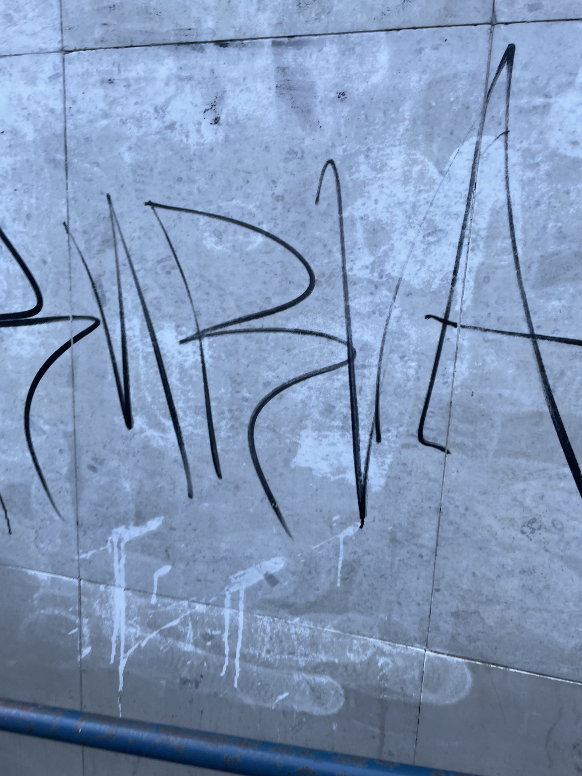 Az utóbbi pár hónapban trágár graffitik jelentek meg az Alkotás utcai lejáró oldalán a falon.