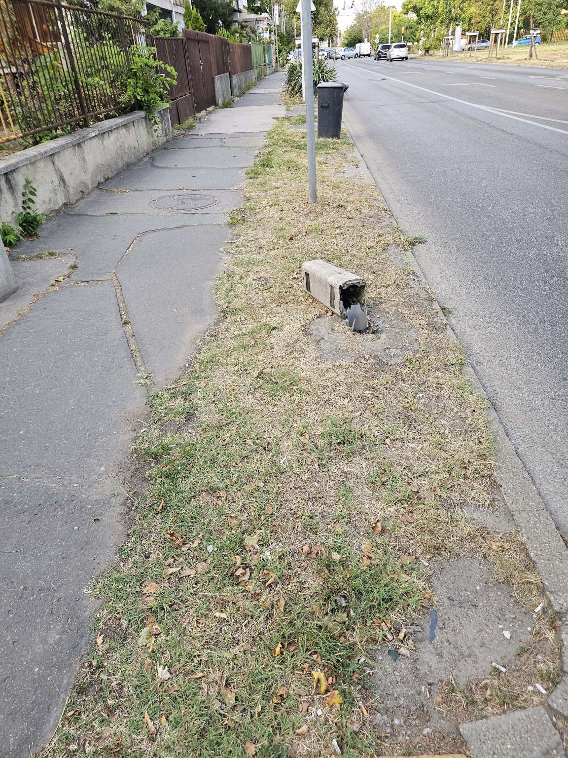 14. kerület, Csömöri út 88. elötti közmű dobozt kidöntötték.
