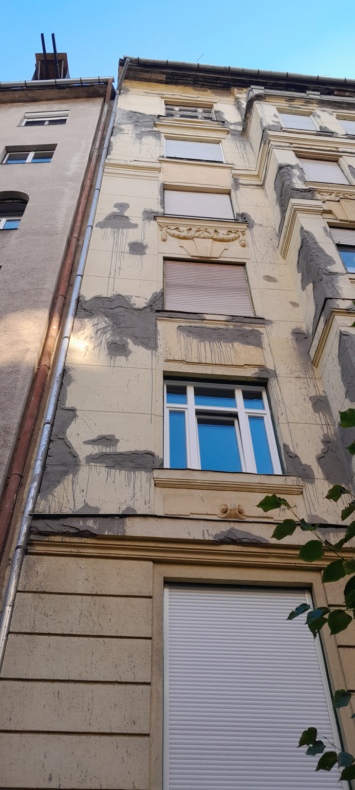 A XII. kerületi Maros utcában a 25. szám előtt tegnap este néhány centi híján a fejemre esett egy kb 20 cm átmérőjű vakolat darab. Az épületről ("Maros udvar") nemrég leverték a vakolat egy részét, ami maradt, maradt. Amíg le nem esik magától. Nincs elkerítve, életveszélyes! Segítségüket köszönöm. Üdvözlettel, Dr. Nádor Katalin