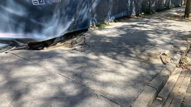 Beszakadt járda építő nehézgépjárművek forgalma miatt