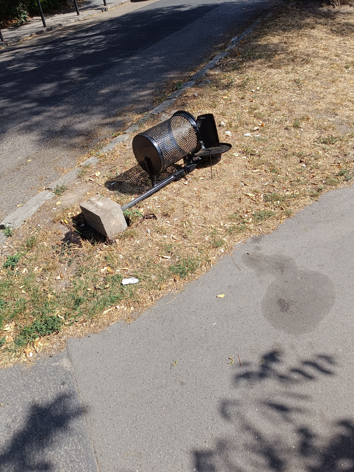 Mészáros utcai aldi mellett van egy kis zöld terület, ahol kidőlt egy kuka. Szeretném, ha megjavítanák. Előre is köszönöm!