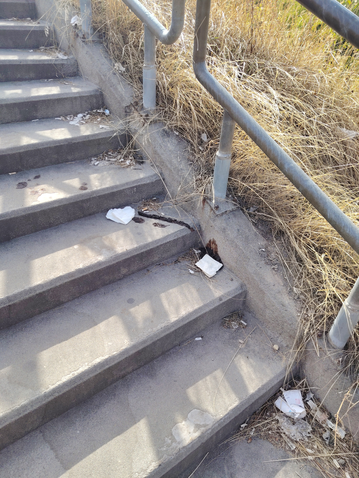 A Szentlőrinci úti felüljáróra, a buszmegállóhoz felvezető északi lépcső fekáliás.