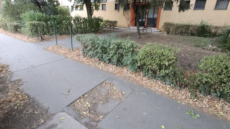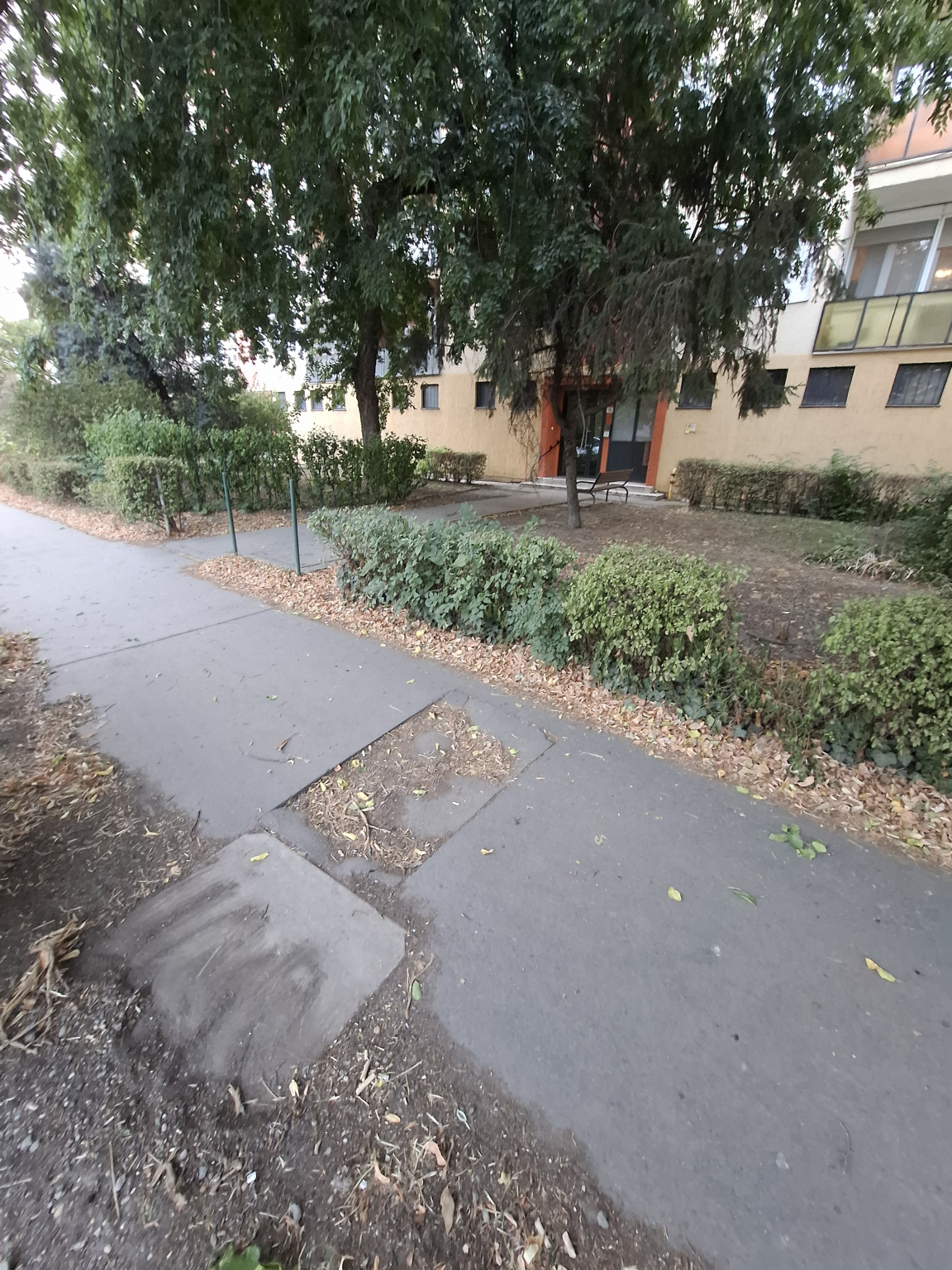 Az Egressy út 76 előtt régóta megvan süllyedve a járda a fedlap vonalában.