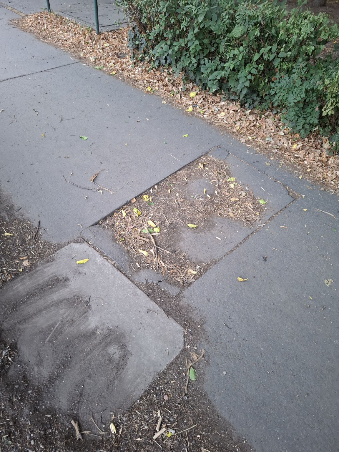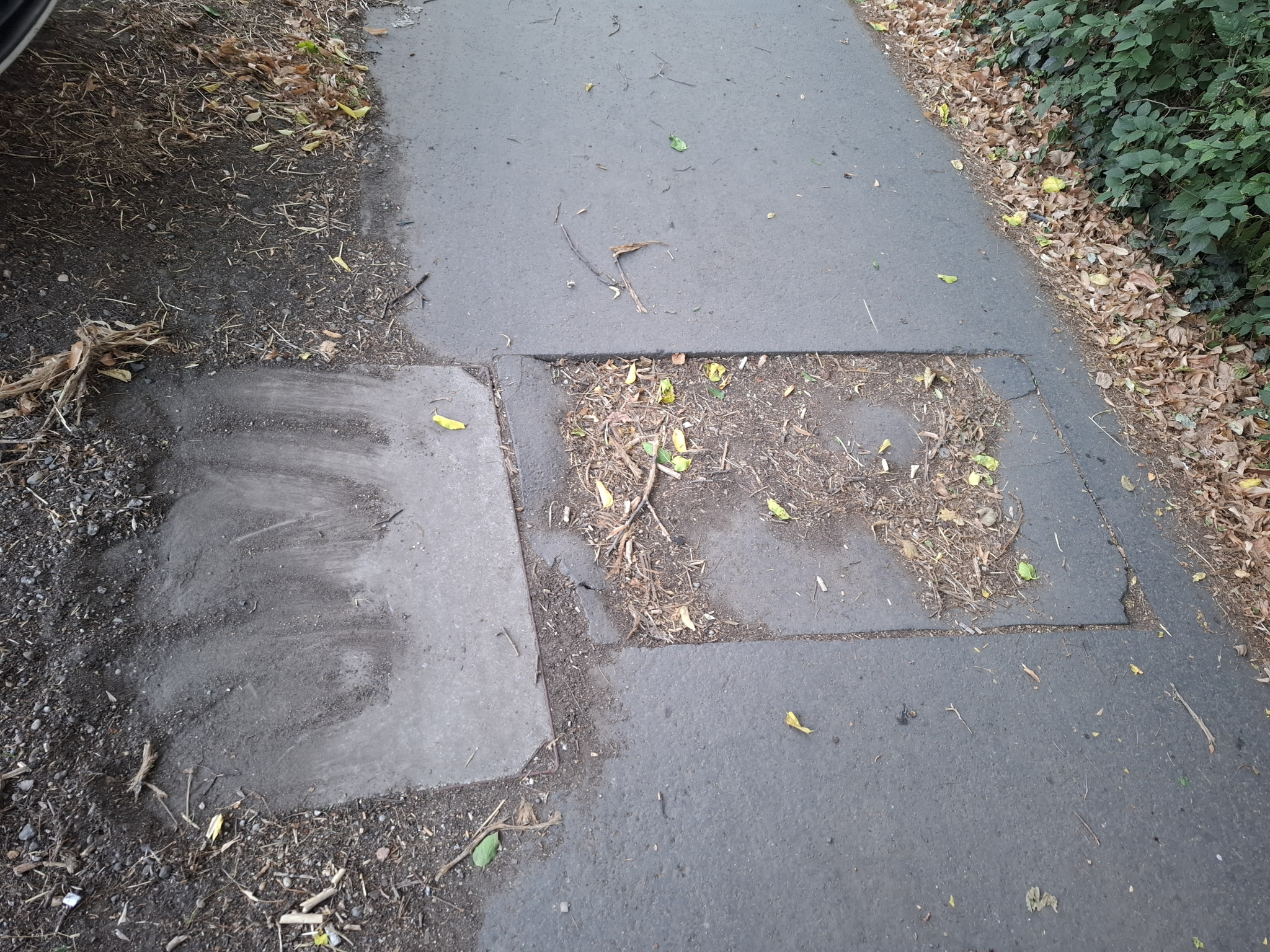 Korábban is született erről már bejelentés, akkor az Önkormányzat Műszaki Osztálya azt nyilatkozta, hogy a fedlap telepítésekor/felújításakor vágtak bele a járdába, amit nem állítottak helyre. Ez teljesen elképzelhető, mert a süllyedés valóban csak a fedlap mellett van.