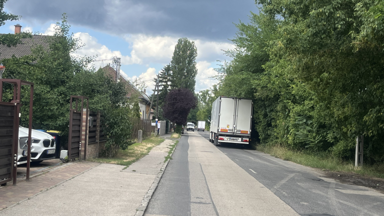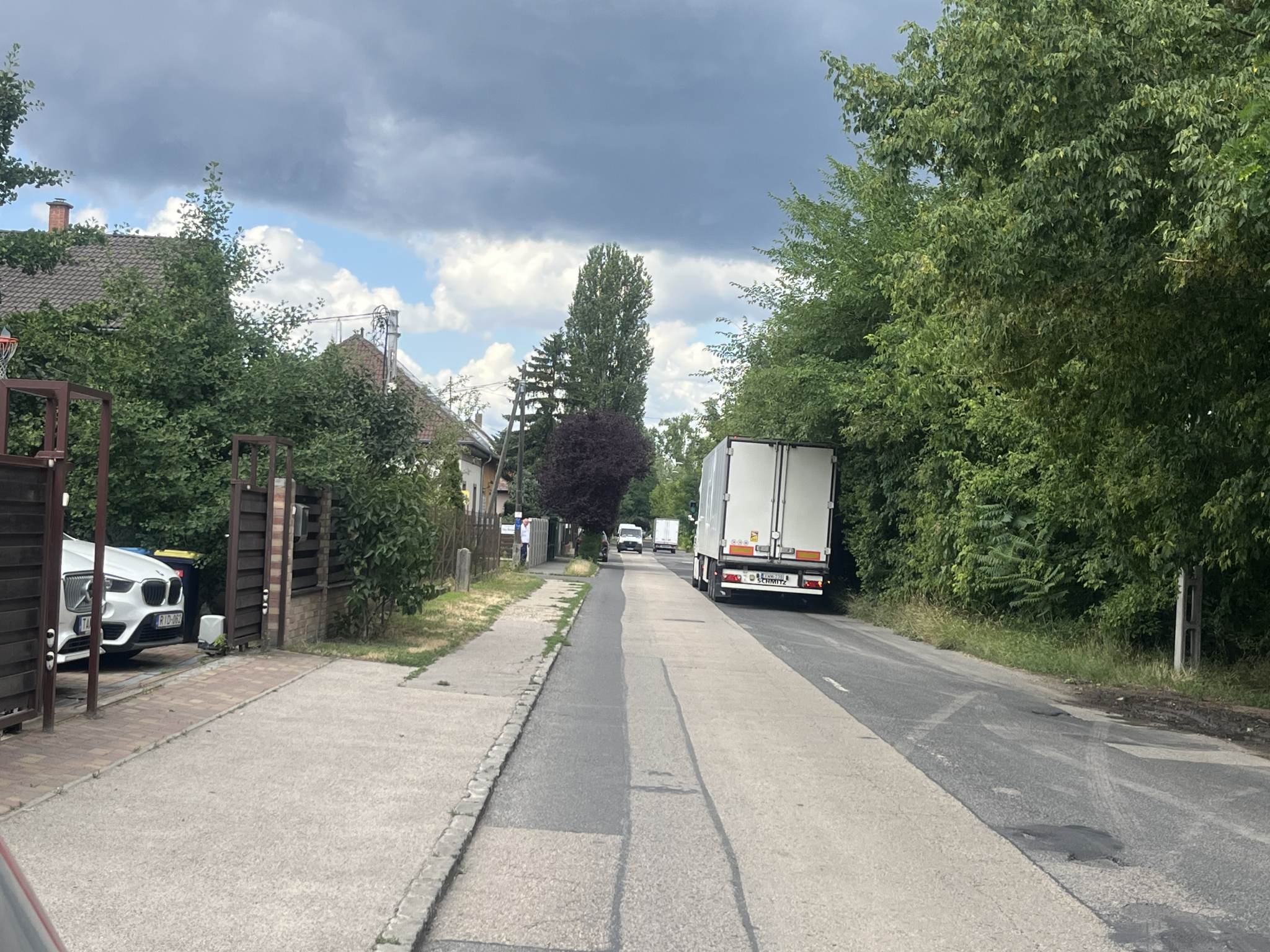 Csak az elmúlt 1 órában kb. 30 kamion száguldott át az utcán. Kihez kellene már fordulnunk, hogy kezelve legyen a probléma?!