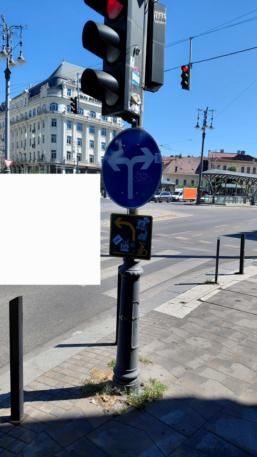 A Kálvin téren Buda felé, a Múzeum krt és a Kecskeméti utca kereszteződésében korábban kihelyeztek egy kötelező haladási irány jobbra vagy balra táblát. A kereszteződésből 3 irányba lehet tovább haladni, a tábla miatt csak 2 irány a szabályos. Kérem a tábla eltávolítását.