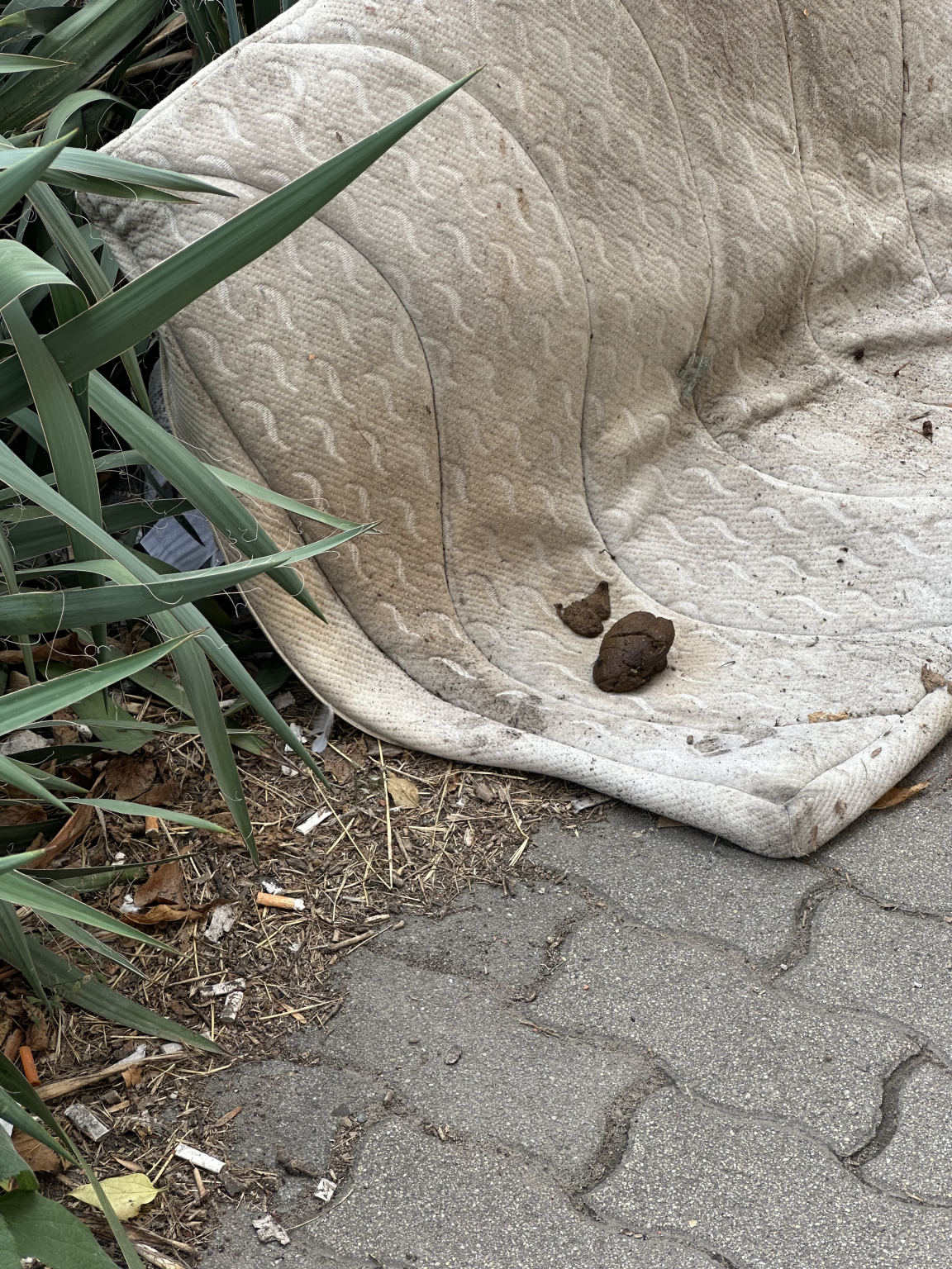 Ha esetleg valaki nem látná: több hetes ürülékdarab a matracon, lom és szemét mindenhol.