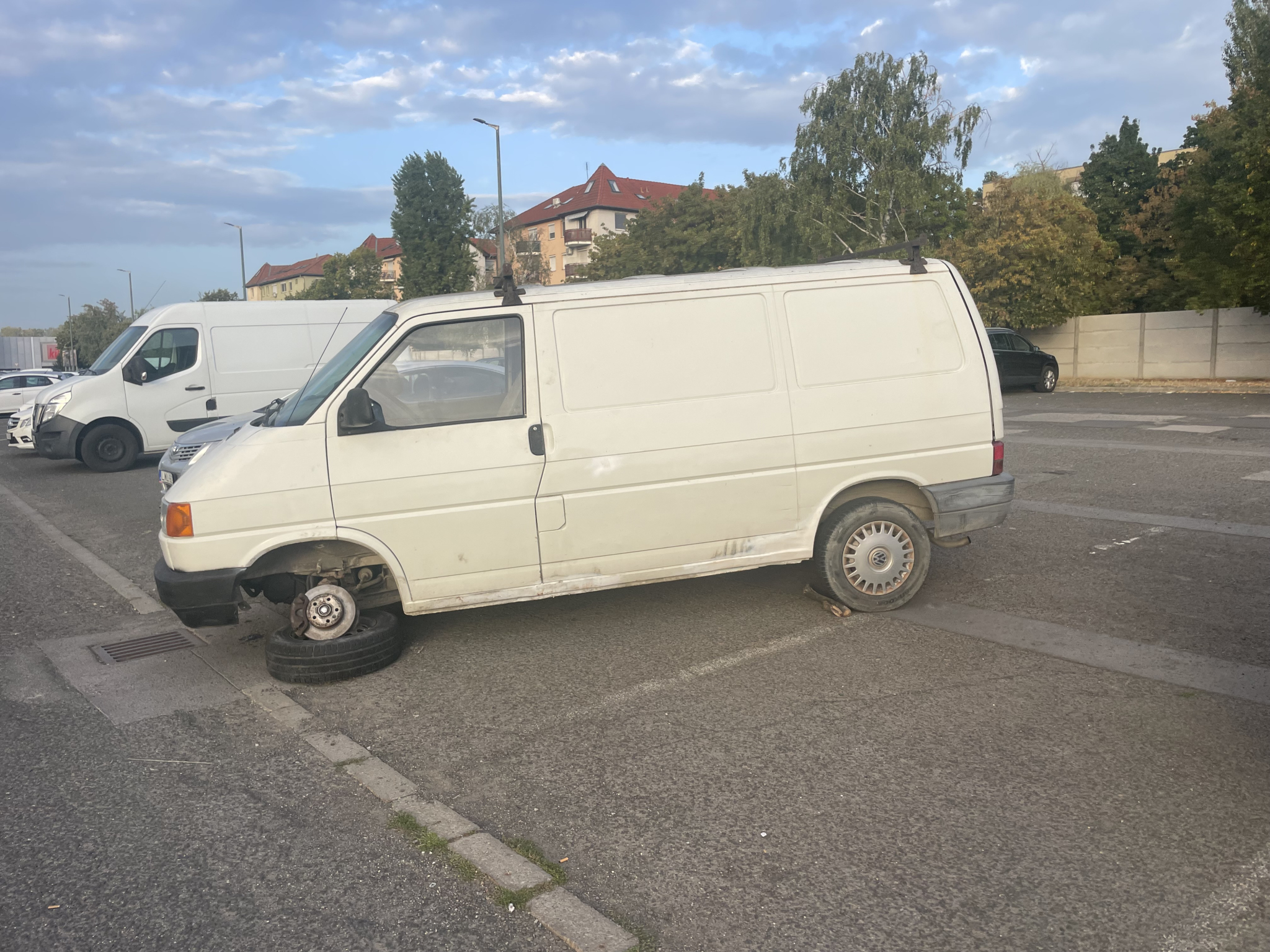 Keresztbe 2 parkolot foglal es le van szerelve a kereke csopog belole valami
