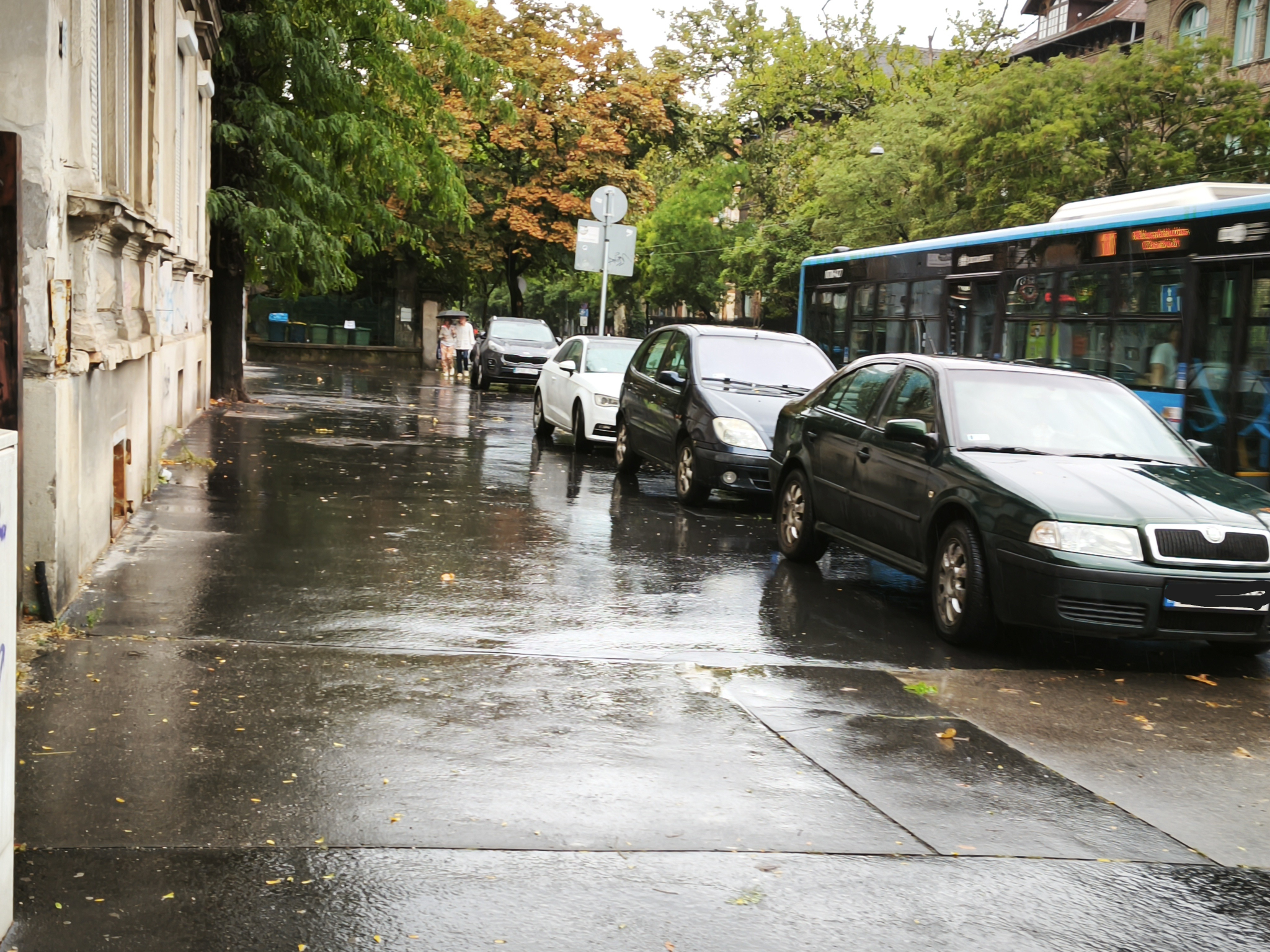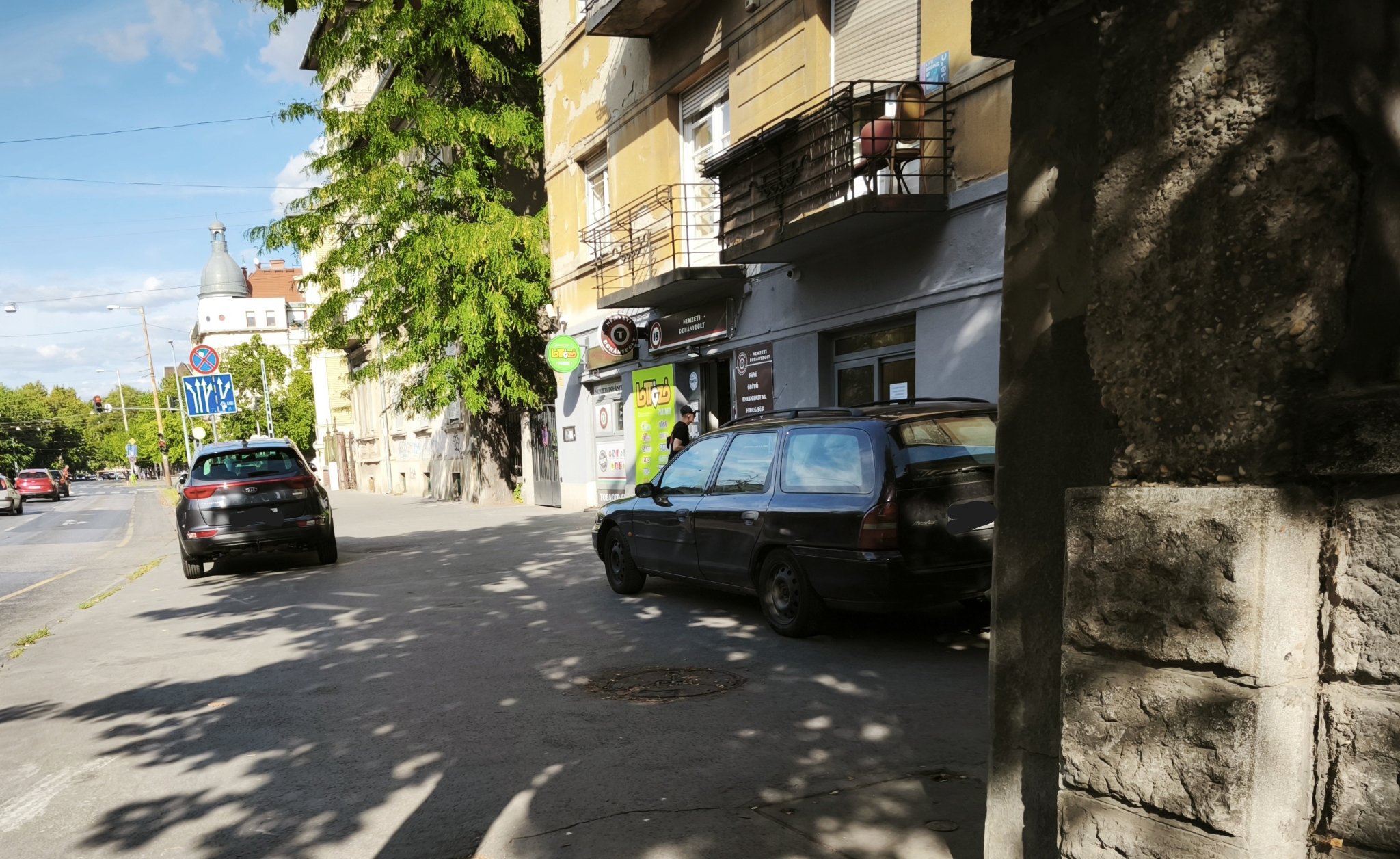 A járda a gyalogosoké!!! A megjelölt szakaszon rendszeresen hosszú távú parkolásra használják a járdát. Itt kijelölt parkolóhely nincsen, sőt megállni tilos tábla kétszer is ki van helyezve. A járdán történő gyalogos közlekedés, üzletek megközelítése nehézkes, olykor a fel-alá tolató járművek miatt veszélyes. Ezen járművek tulajdonosai pedig nyilvánvalóan parkolási díjat sem fizetnek (ellenőrzési jogköre a parkolási cégnek nem kijelölt helyen nincsen). Külön minősített eset a társasházból kivezetett kábellel történő, nyilvánvalóan szabálytalan elektromos autó töltés esete.