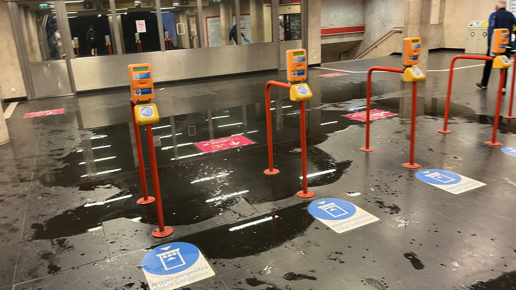 Az esőzések következtében a Puskás Ferenc Stadion metróállomáson a Szálló felőli kijáratnál hatalmas tócsányi víz gyűlt össze. A jegy érvényesítése után a két oldalon kb. 1.5-1.5 méteren lehet megkerülni. Balesetveszélyes, beszűkíti a közlekedő területét, ill. feltételezem, a jegyérvényesítők elektronikájában is zárlatot okozhat. Kérném, hasonló időjárási körülmények esetén legalább töröljék fel, persze hoszútávon a beázás okának feltárása és a probléma áthidalása lenne a legjobb.