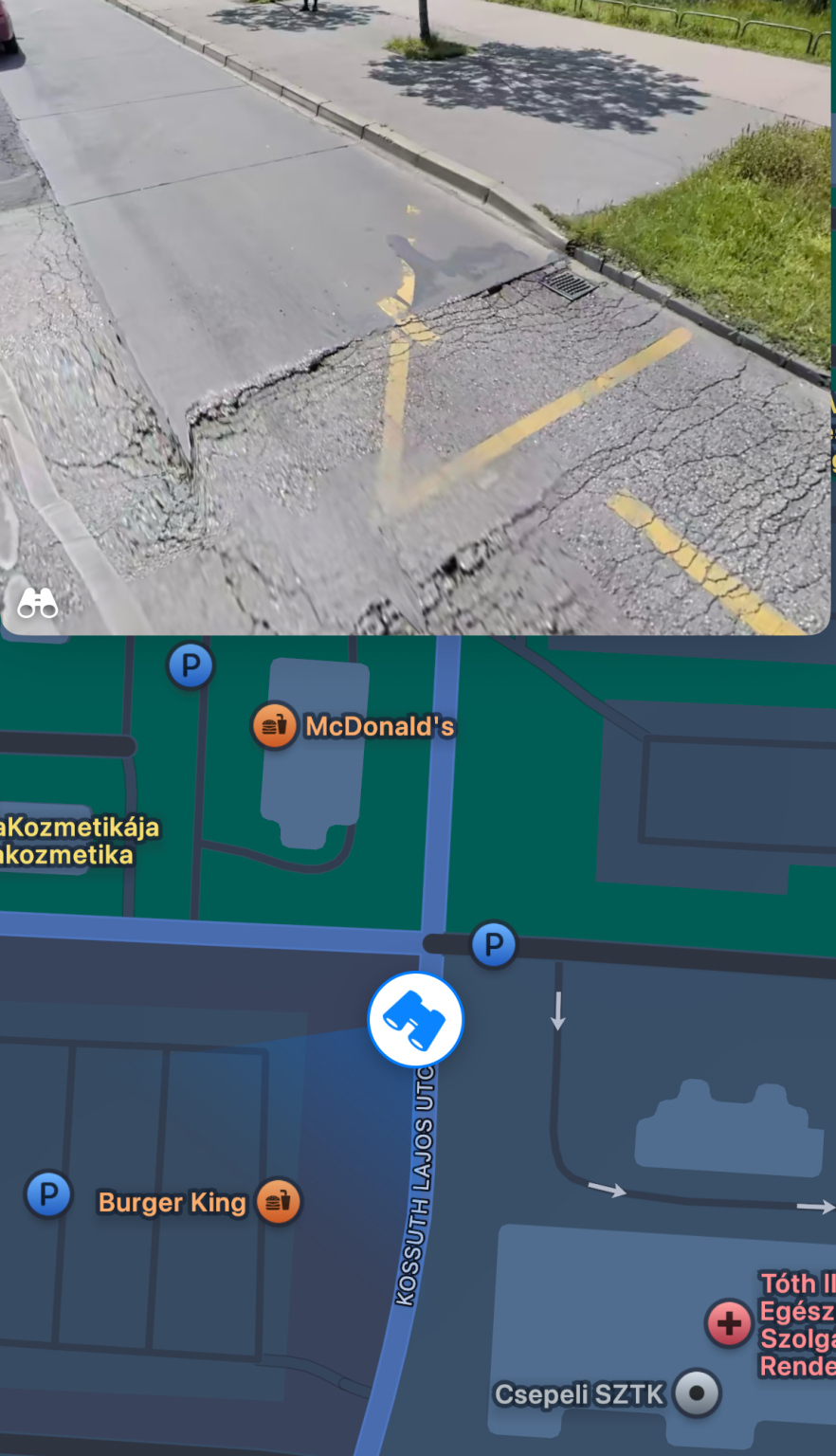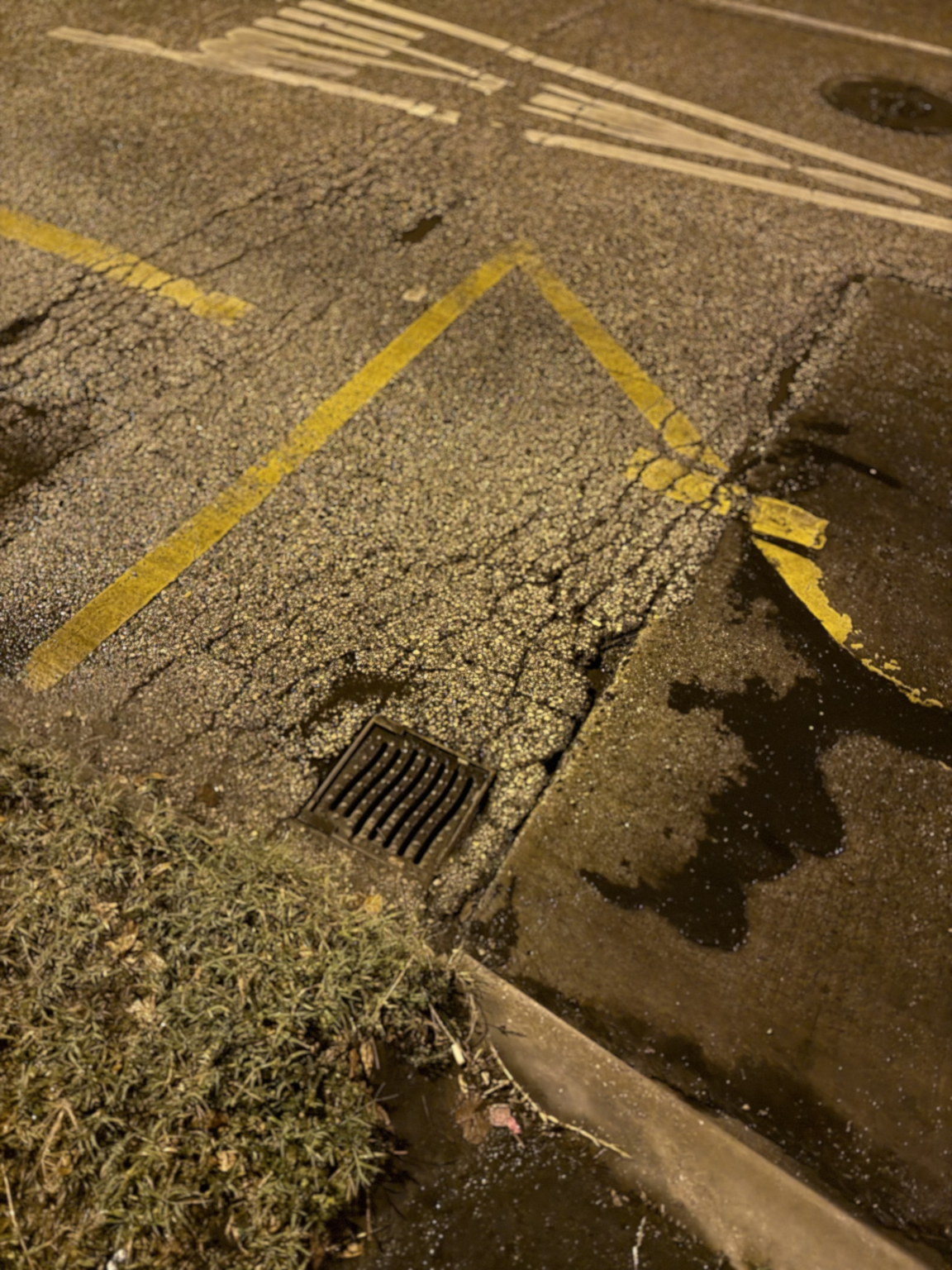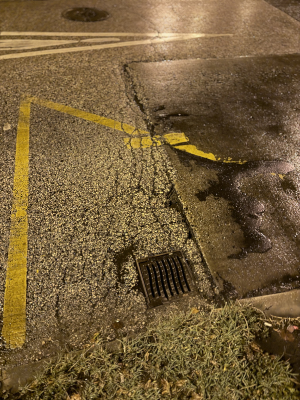Esőelvezető csatornafedlap besüllyedve, csattog, mély.