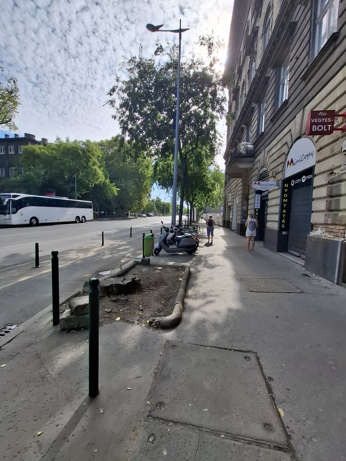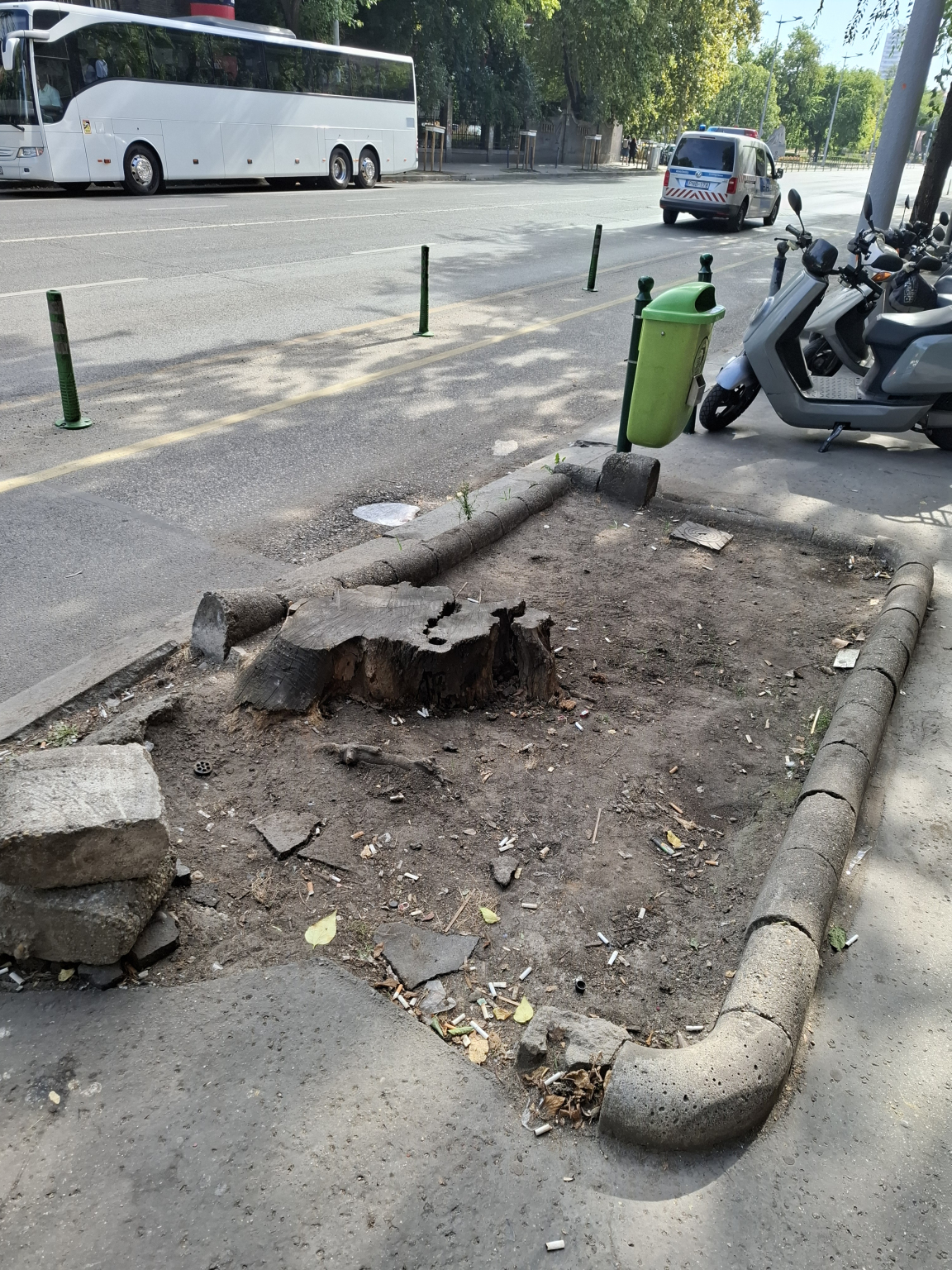 A megjelölt helyszínen már évek óta egy kivágott facsonk áll. Kérem rendezzék az ültető területet, az ágyás szegélyeket állítsák helyre és ültessenek egy fát!