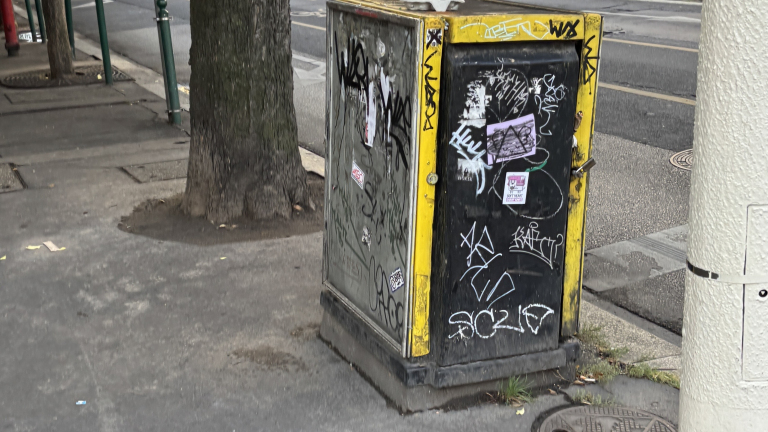 A József körúton a Harminckettesek terénél a McDonald's mellett látható ez az igen elhanyagolt állapotban lévő szekrény. Kérem a tisztelt illetékeseket, legyenek szívesek megtisztítani a sok piszoktól és graffititől, ezzel is egy kicsit szebbé téve a körút ezen szakaszát! Köszönjük munkájukat!