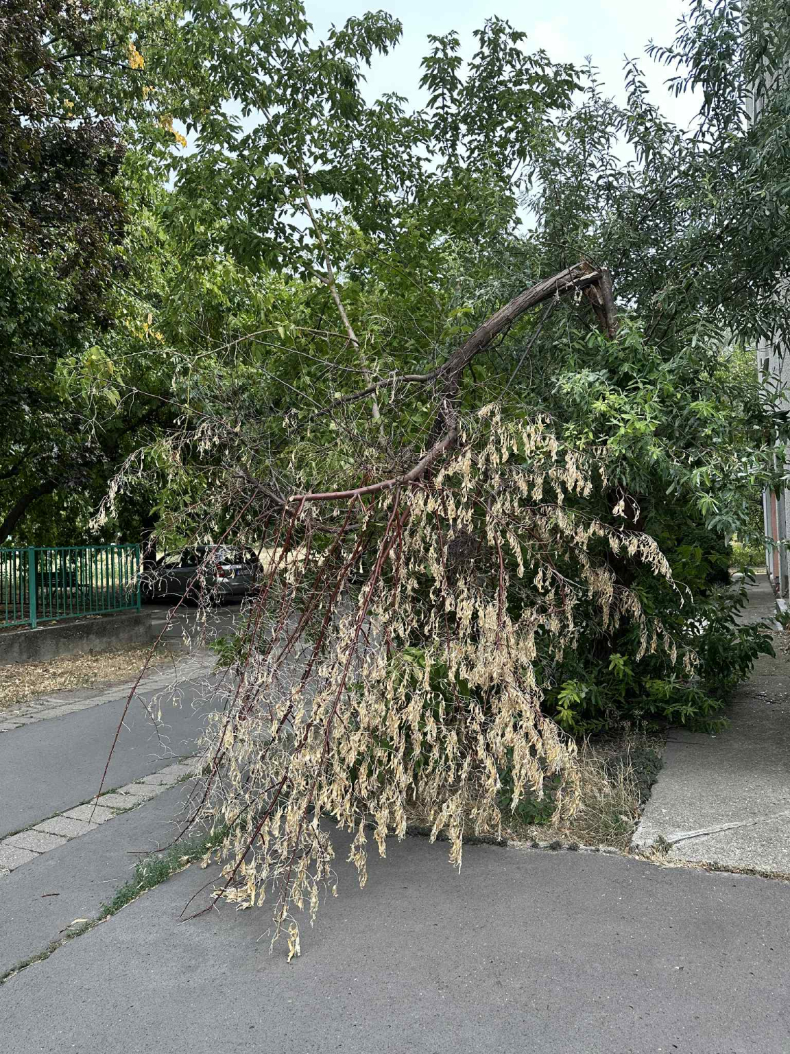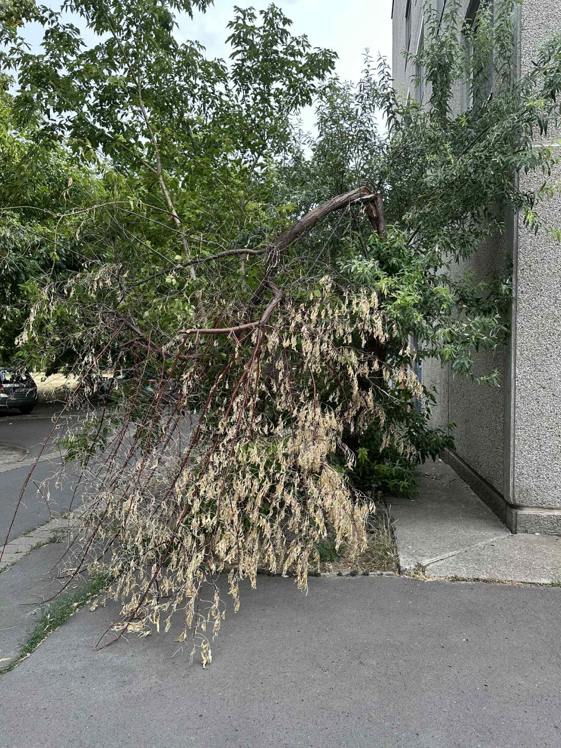 3. Kerület Pók utcai lakótelep - Vitorla óvoda sarkán kidőlt akác fa.