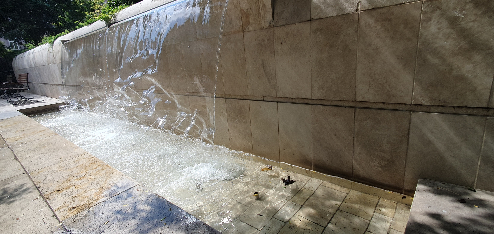 Sajnos döglött verebet làttam a Hild-tèr szökőkútjában.