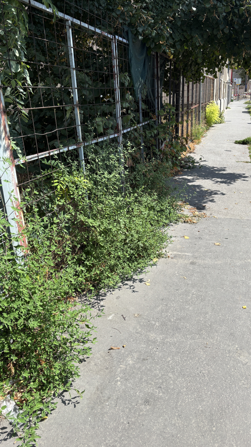 Az Apáthy István utcában a parkolónál hatalmas gyom nőtt, blokkolva az egyébként sem túl széles járda egy részét.