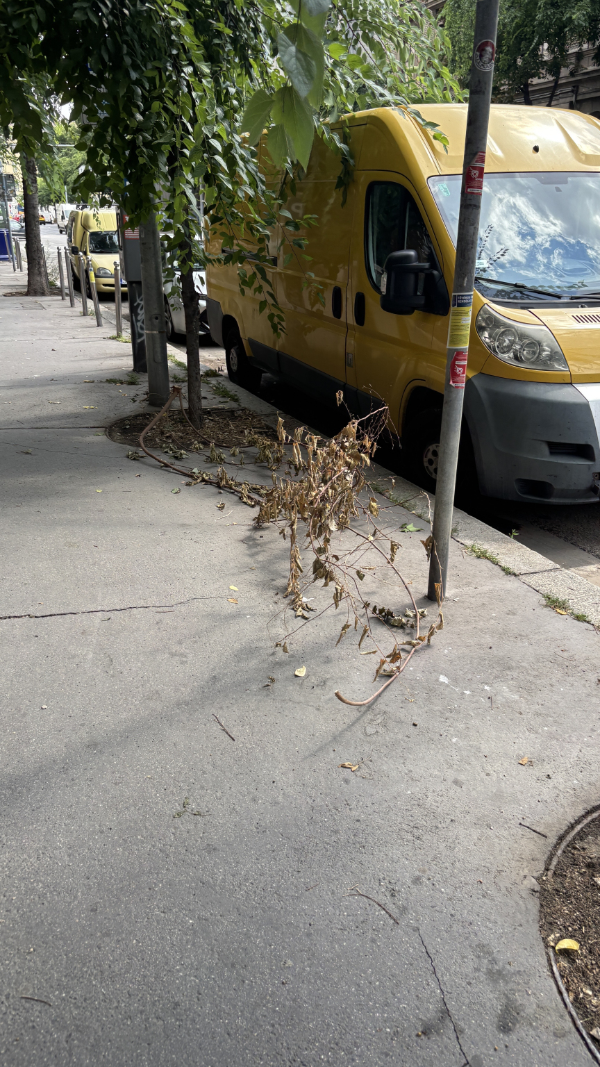 Vélhetően metszés történt, melyet követően egy ágat nem gyűjtöttek össze, hátrahagytak, azóta itt van és már jól elszáradt.