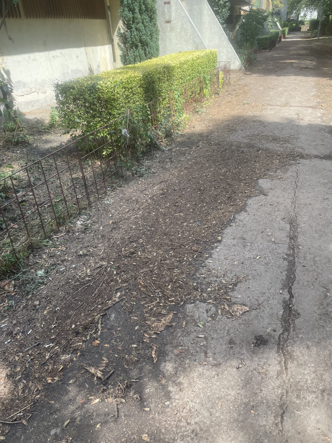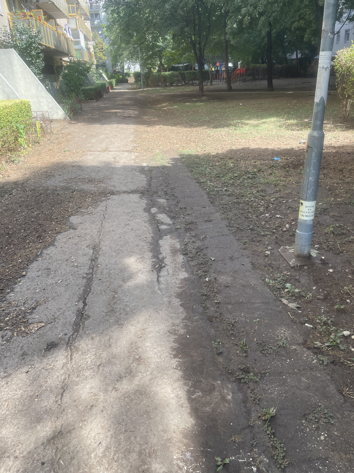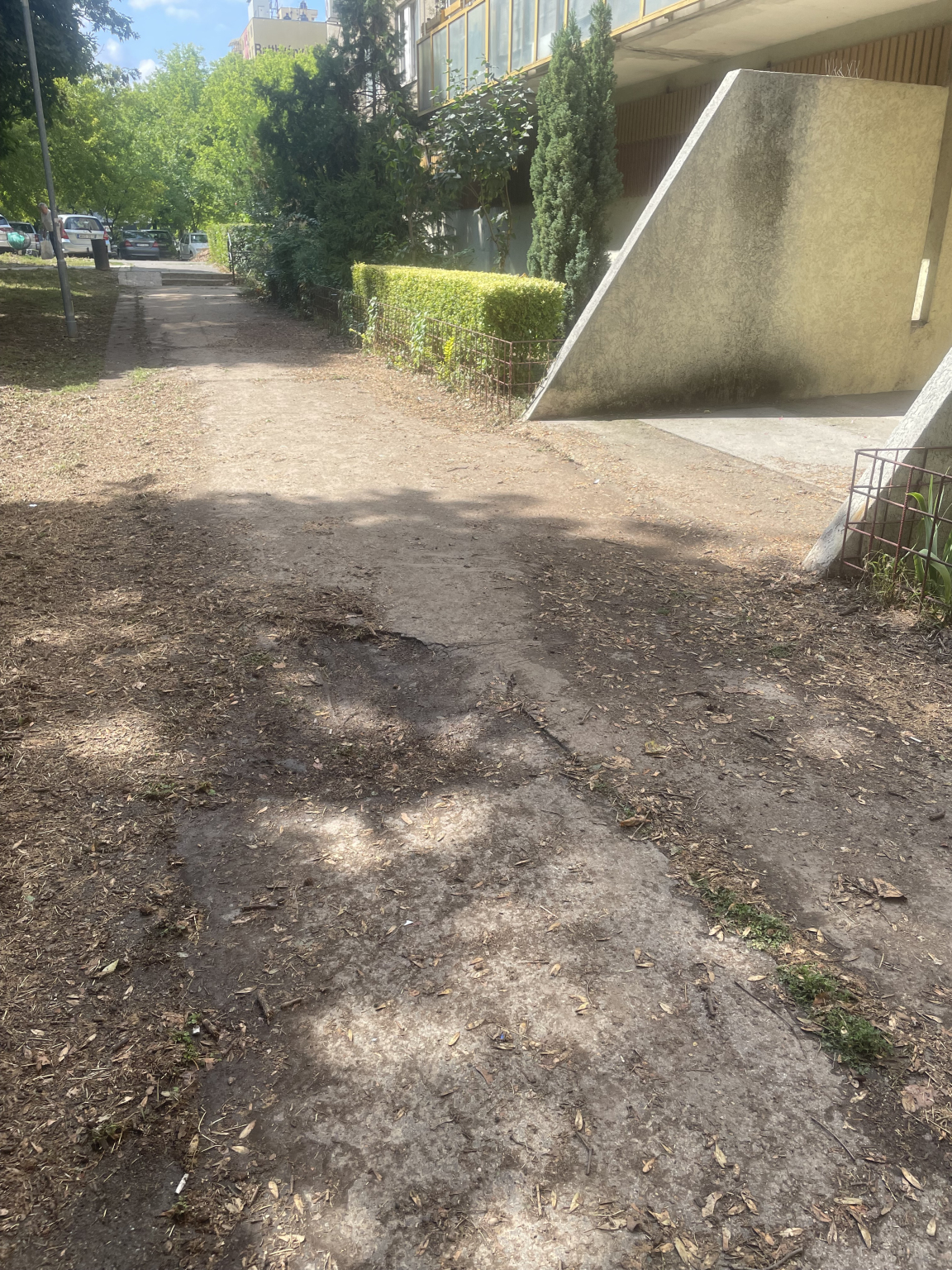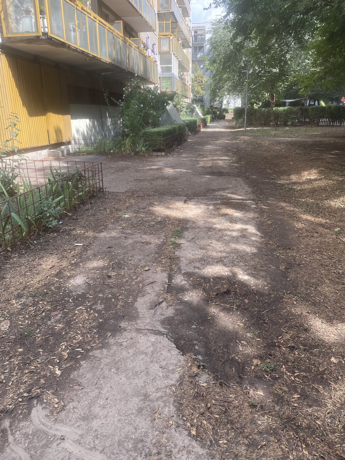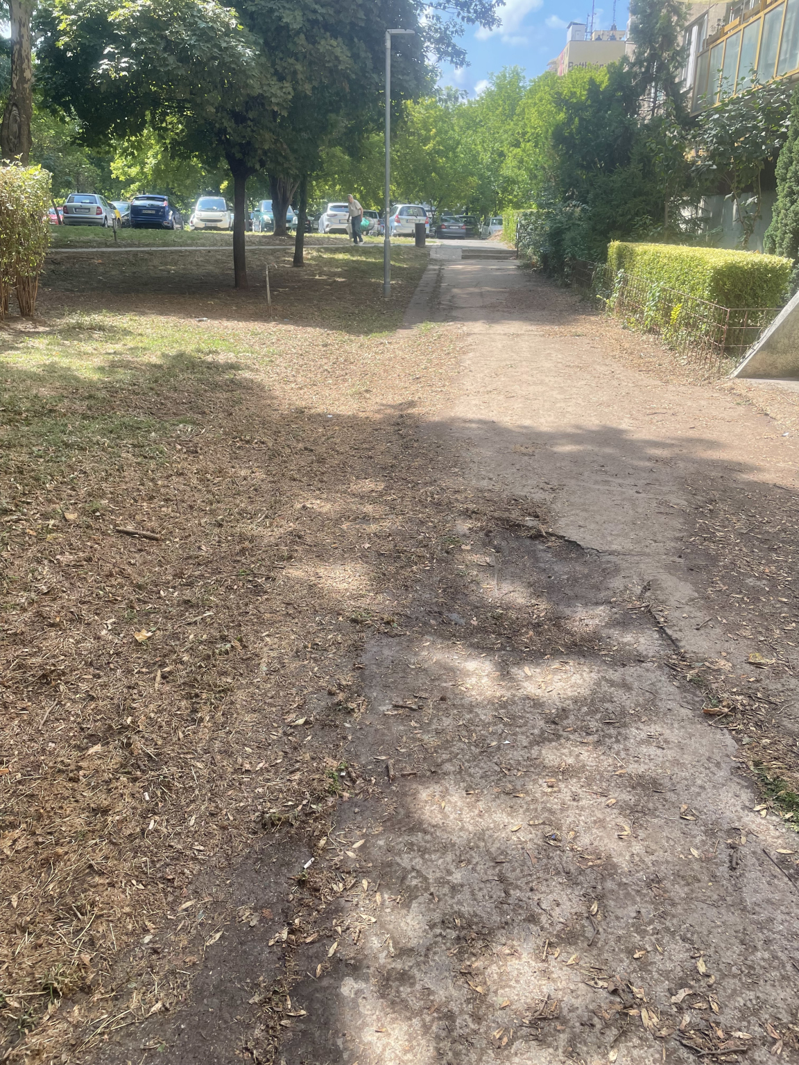 Az Irányi Dániel és a Klapka utca közötti parkból eső esetén a járdára, kapuba (esetenként még a lépcsőházba is) hordalékot mos a víz. Ezáltal saras az egész járda és a parkból fogy a föld, kimossa a fák gyökerét.