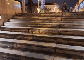 A Fővám téri aluljáró C lépcsője sérült, balesetveszélyes.