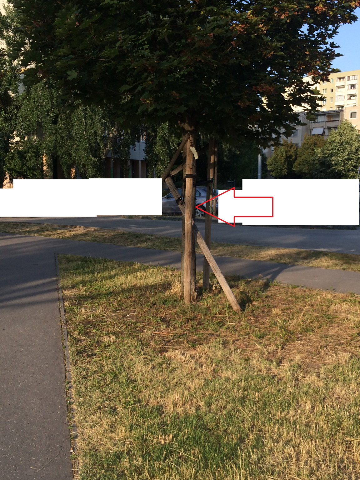 Jelzett helyszínen lévő fatámaszték kidőlt.