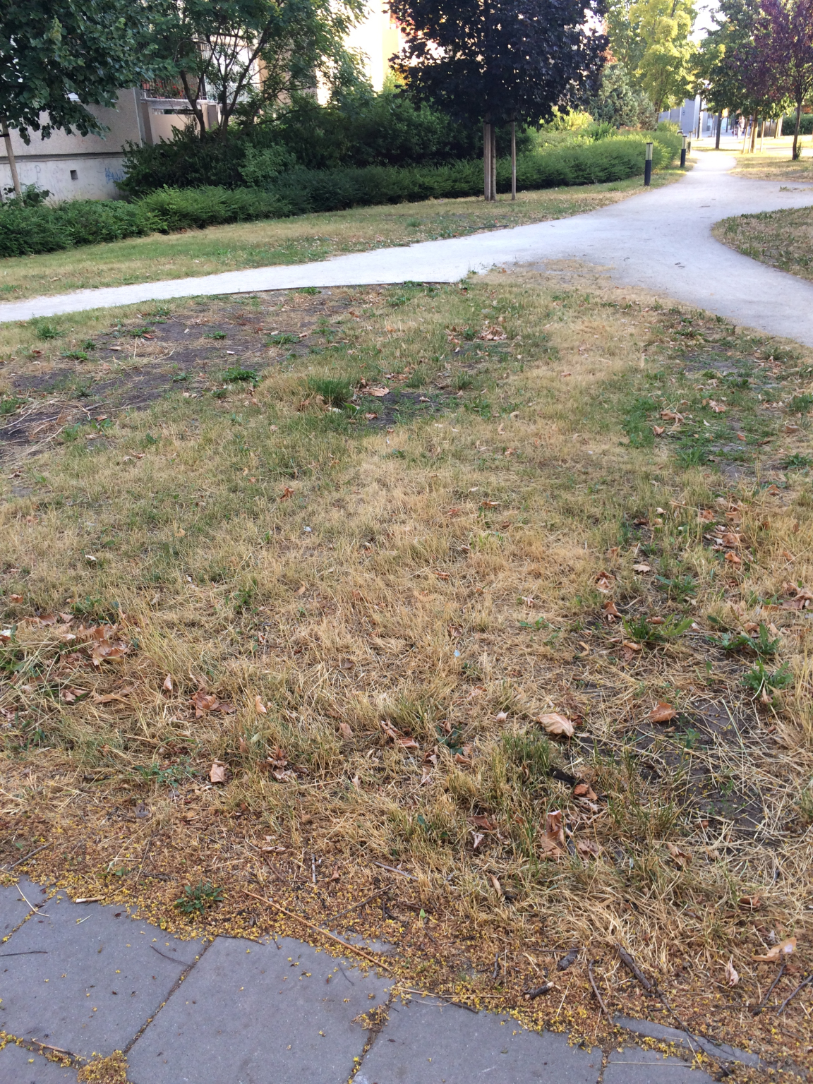 Jelzett helyszínen lévő felújított parkot tönkretették. Valamilyen csőtörés / munkálat kapcsán nemrég nehéz gépjárművekkel hajtottak be a parkba, és sajnos több helyen tönkretették a szépen felújított zöldterületeket. A fűben kijárások vannak, a murvás rész is igazításra szorul.