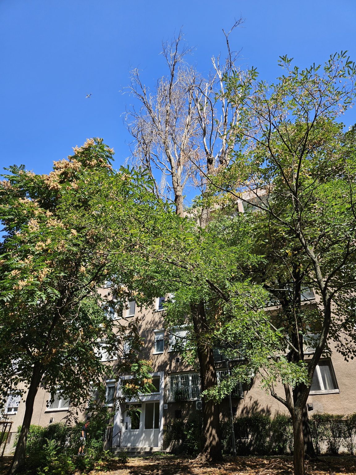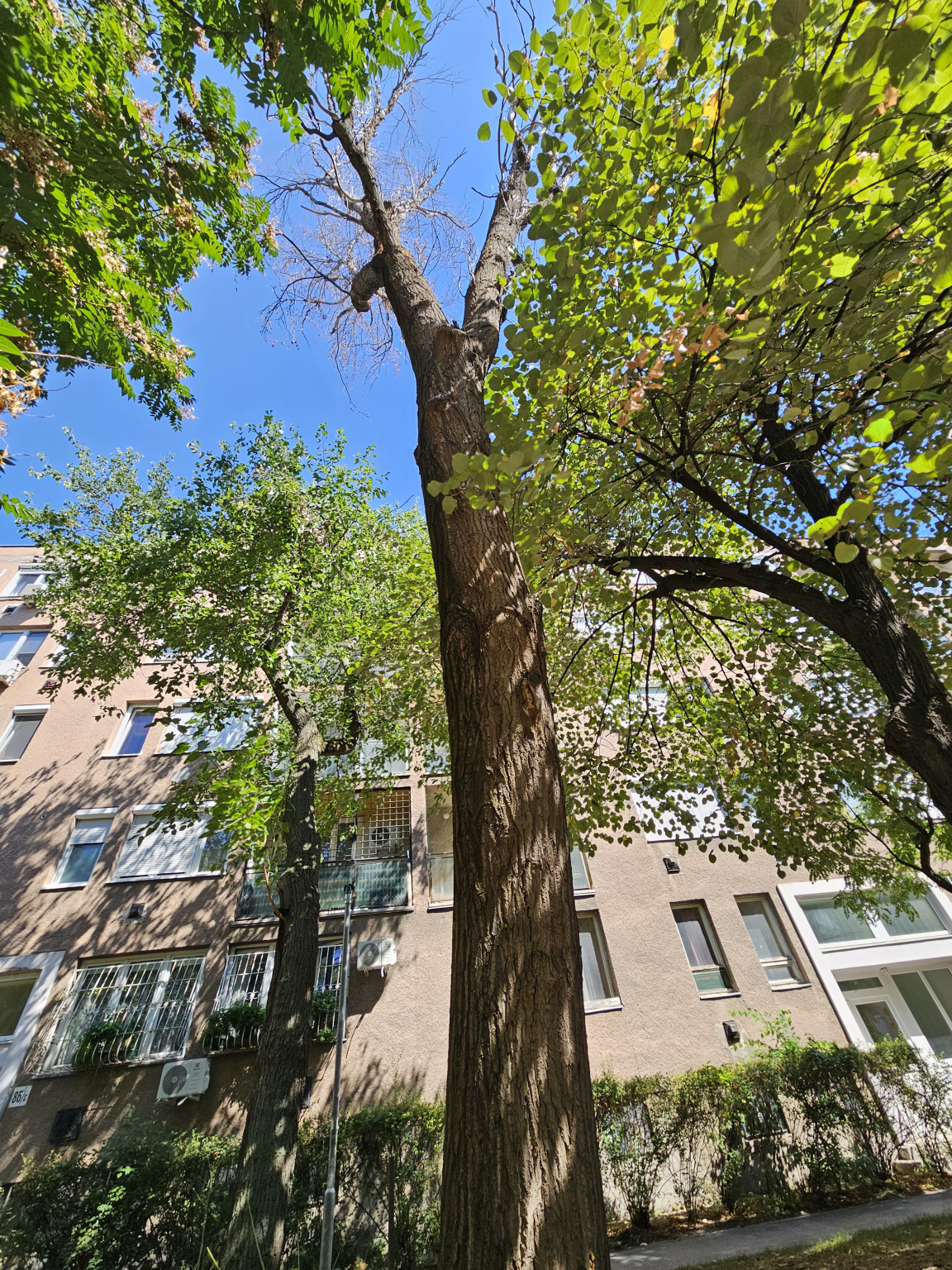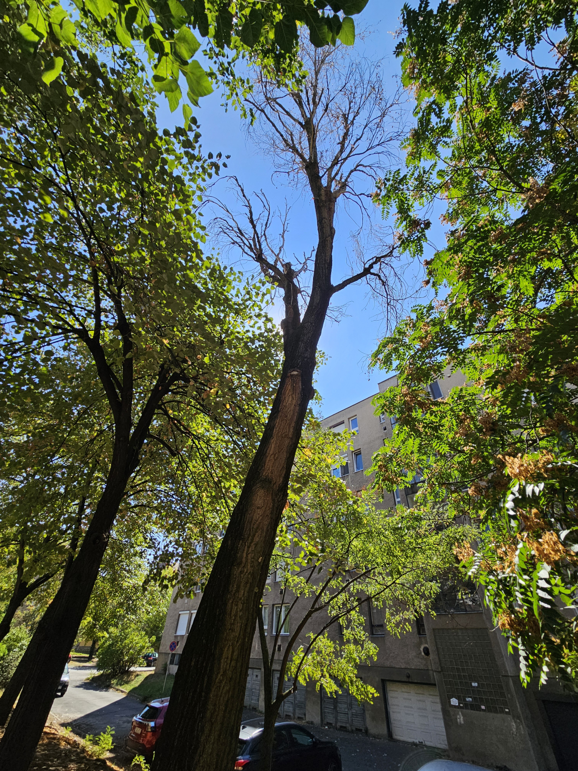 Ezúton szeretném jelezni, hogy Zuglóban, a Nagy Lajos király útja 86/B-C között található hátsó, parkoló feletti közterületen álló egyik hatalmas fa teljesen kiszáradt, a korábbi viharokban több ága is letörött már és félő, hogy az autókra is esik.