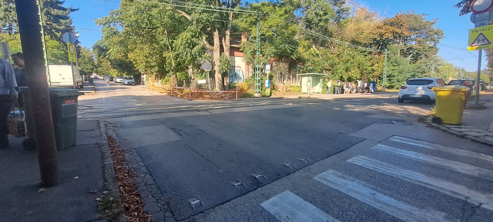 Sajnálatos módon vettük észre szülőkkel, már ezen az első iskolai napon, hogy a Vadaskerti út/Völgy/ Alsóvölgy utca forgalmas kereszteződésben továbbra sem született megoldás a biztonságos átkelés érdekében. A járdai közlekedést egy elég szerencsétlenül mostanra időzített közműépítés is megnehezíti a villamosmegálló sarkán.