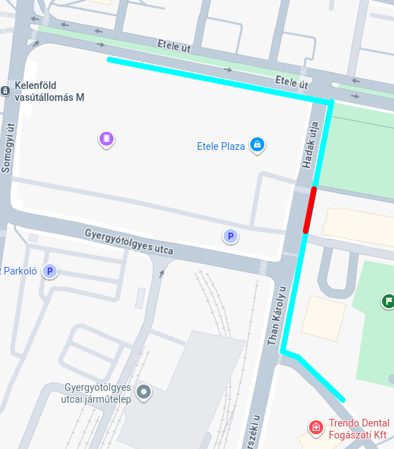 2025 késő tavaszán a csatolt térképen ciánkékkel jelölt részeken közmű munkálatok miatt több helyen feltörték a járda aszfaltját. Nyár közepére elkészültek a munkálatok és vissza is aszfaltozták a felbontott burkolatot. Ami elmaradt, az a pirossal jelzett rövid szakaszon a kerékpárutat jelölő felfestések pótlása.
