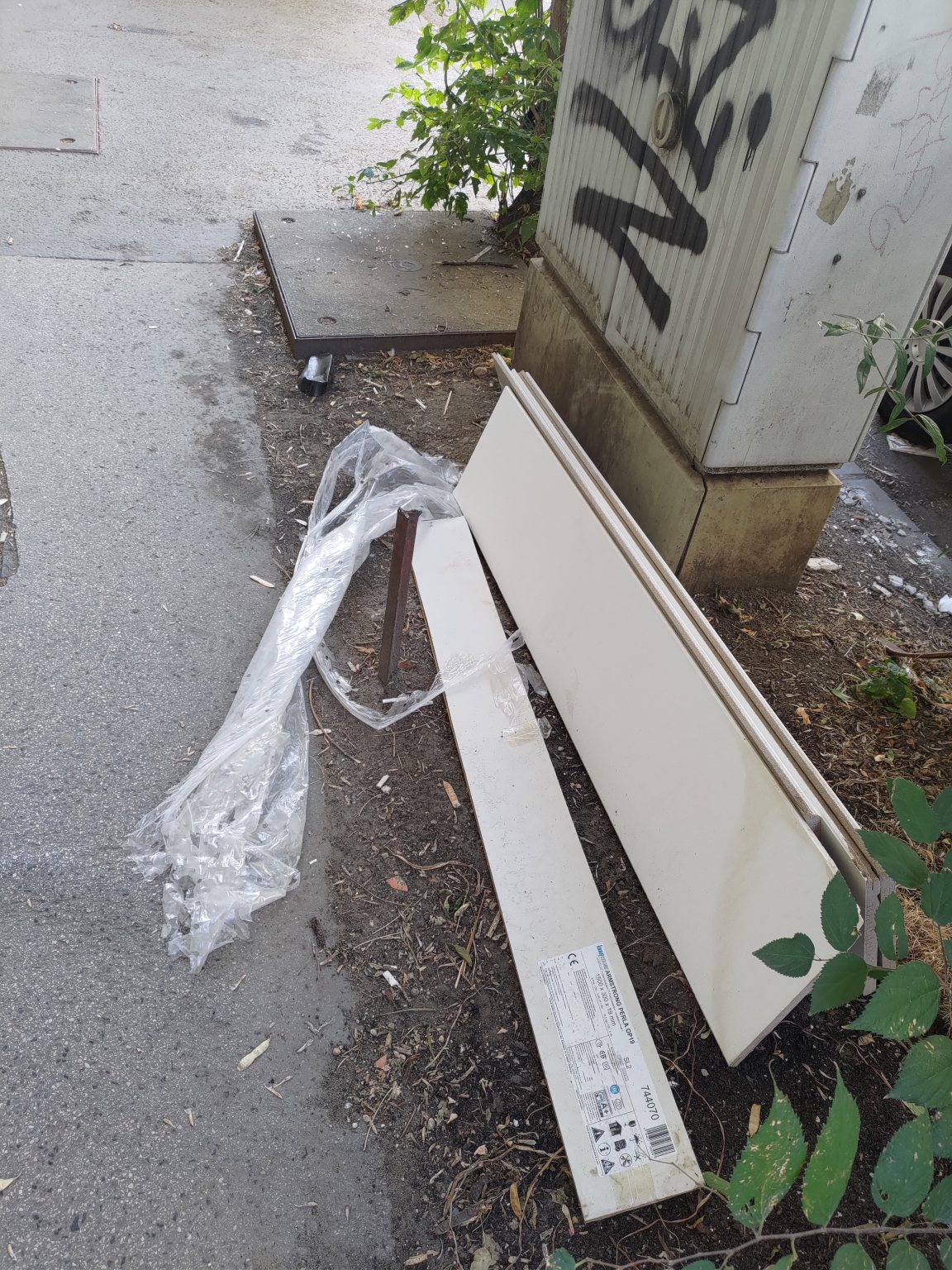 Kidobott bútorlapok a XIV. kerület a Bíbor utcában.