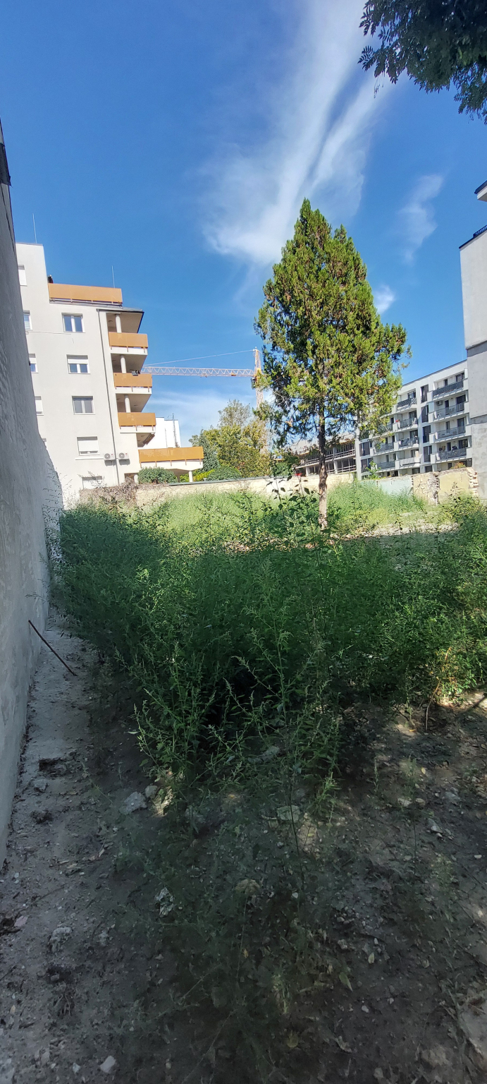 1135 Budapest, Üteg u. 12. alatti építési telken hónapok óta 1.5-2m parlagfű tenyészet nő. Komoly fulladási rohamokat is okozhat a parlagfű allergiásoknak egy ilyen terület a környékben.