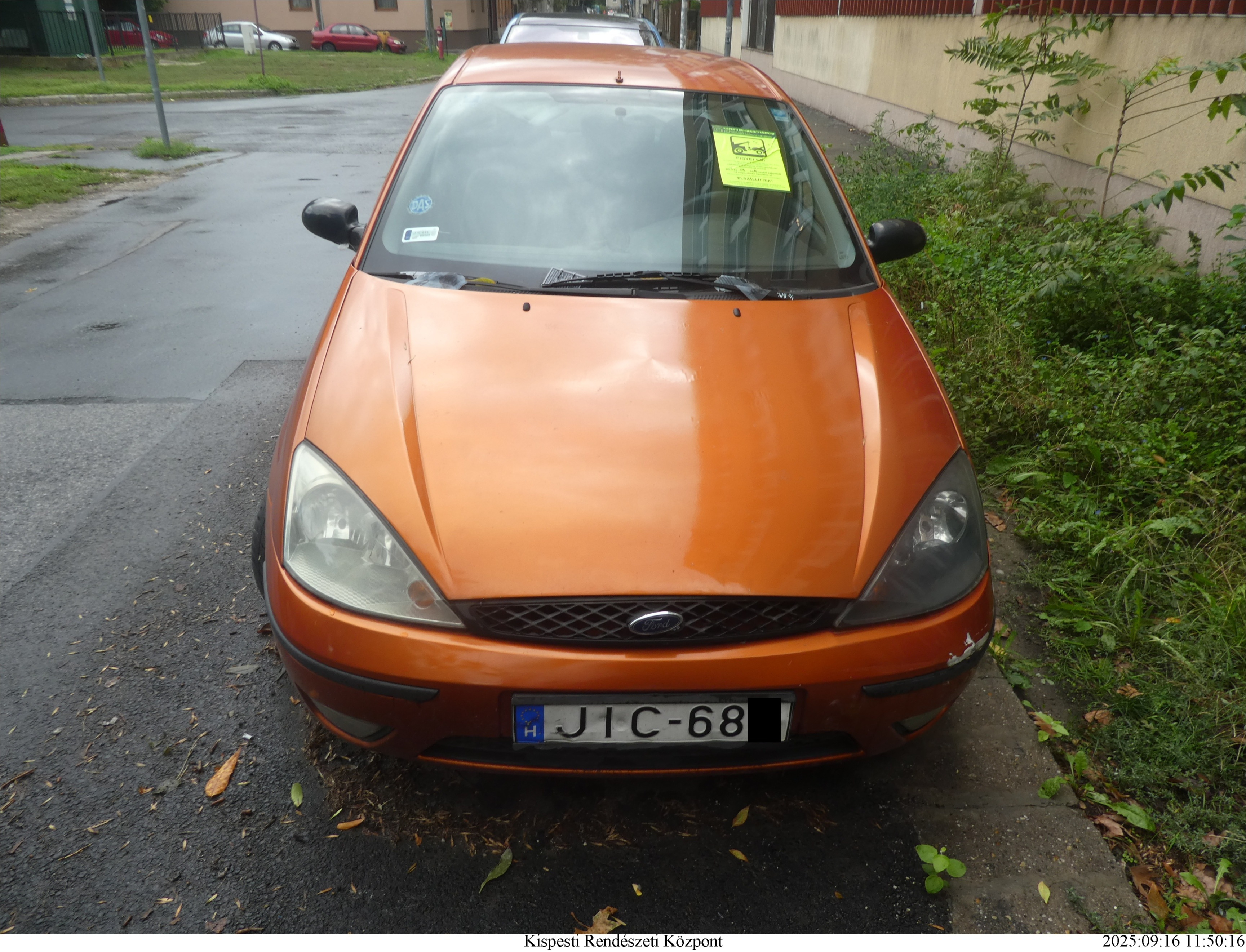 Elhagyott autó (narancssárga Ford, JIC-6xx rendszámmal) parkol közterületen, műszakija 2024.11.21.-én lejárt. Kérem a jármű elszállítását.