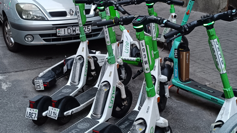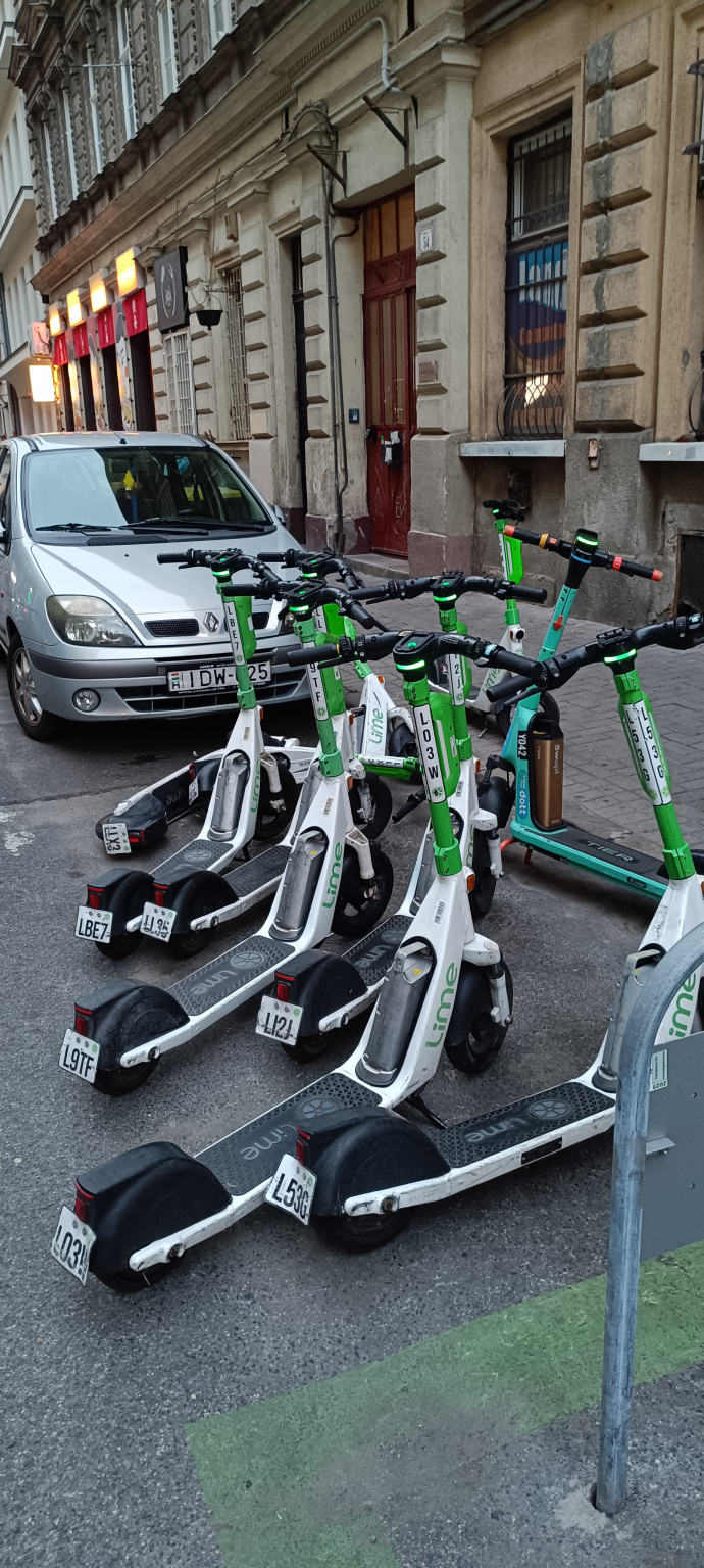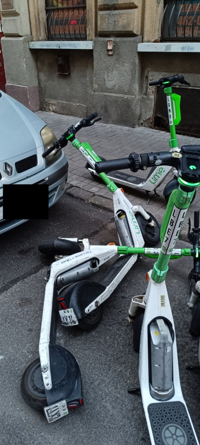 A 7. Kerület, Dohány u.-Akácfa u. sarkán kb 18 roller elfoglalja a parkolóhelyet, egyik megrongálta az ott parkoló autót.