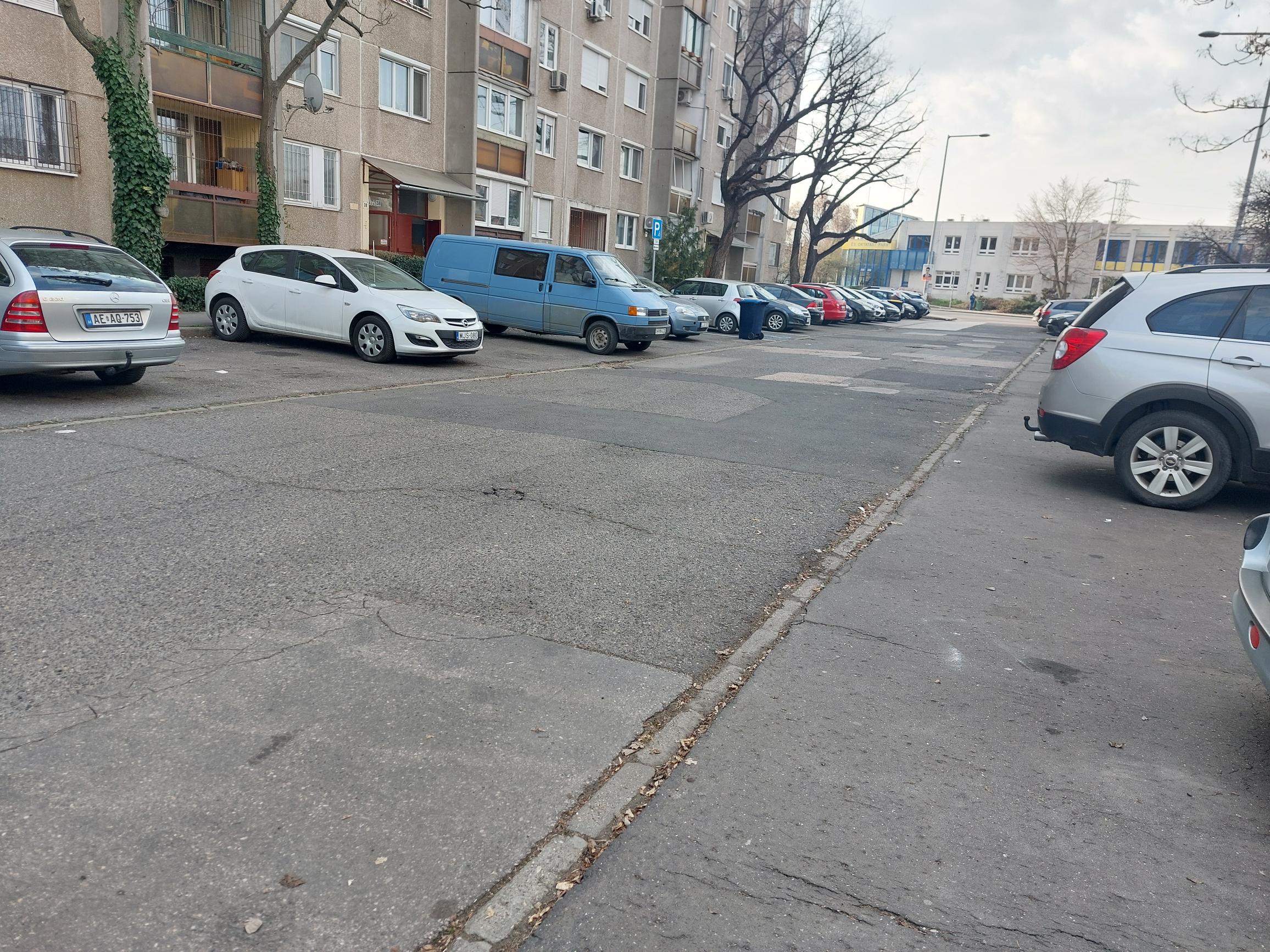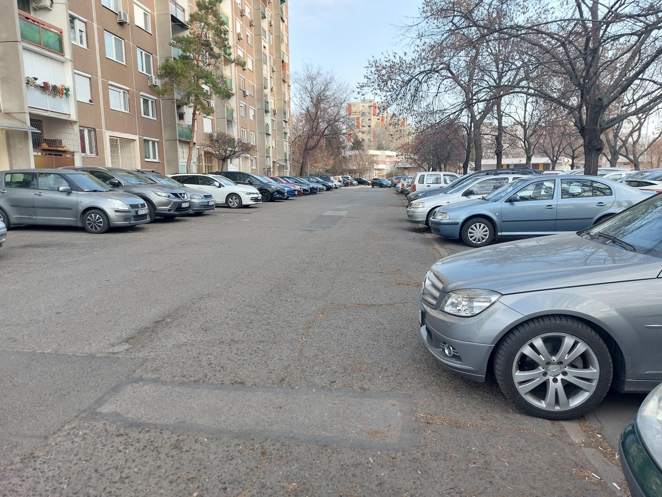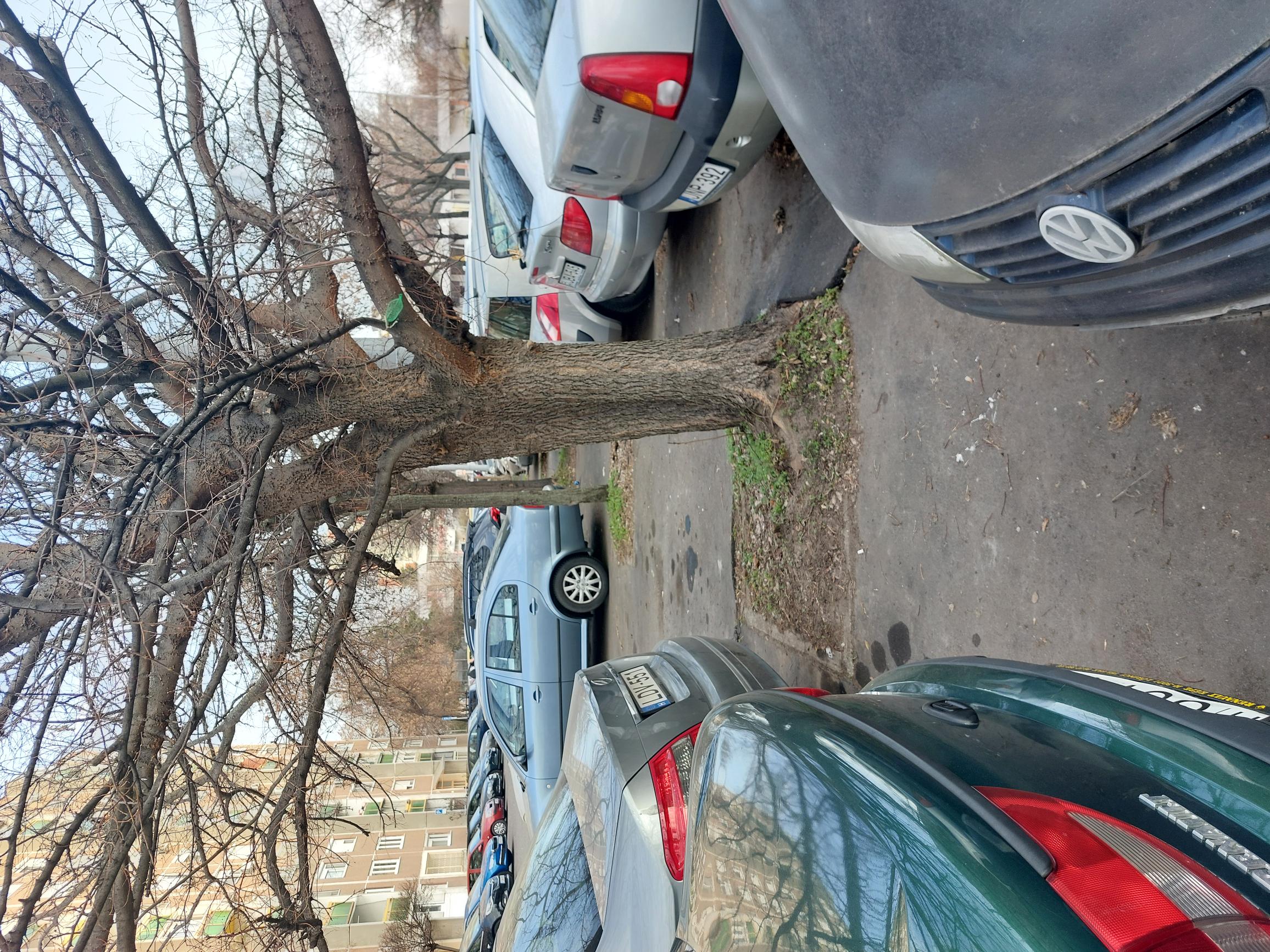 A parkoló fáit szintúgy nem gondozza az önkormányzat, ezért már kisebb szél esetén is nagyobb, korhadt, száraz ágak hullanak az autókra.