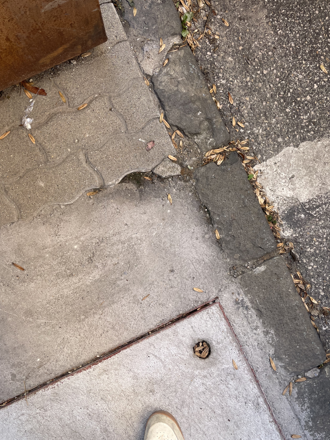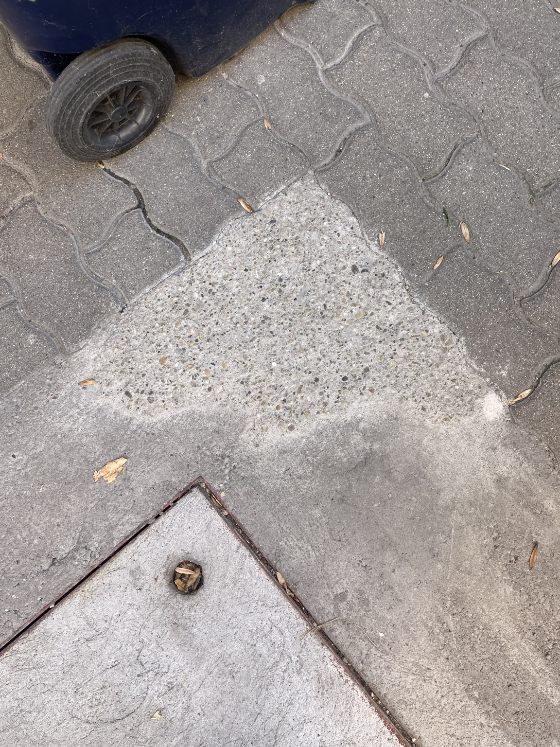 A XII.ker. Greguss utca 12. előtti Telekom fedelet néhány napja rakták le, de a kivitelezés után a munkaterületet nem kerítették el, így a beton megsüllyedt, a gyalogosok beleléptek, ezáltal igénytelen és balesetveszélyessé vált. Azóta javítottak, de a helyzet csak romlott. Az állapot minősíthetetlen.