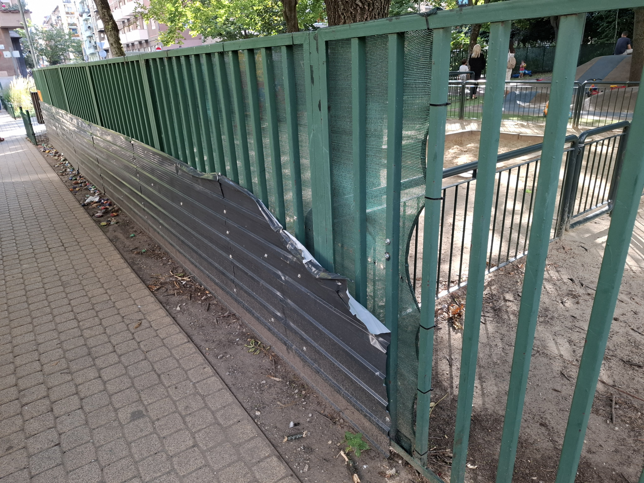 Játszótér rácsán éles lemez