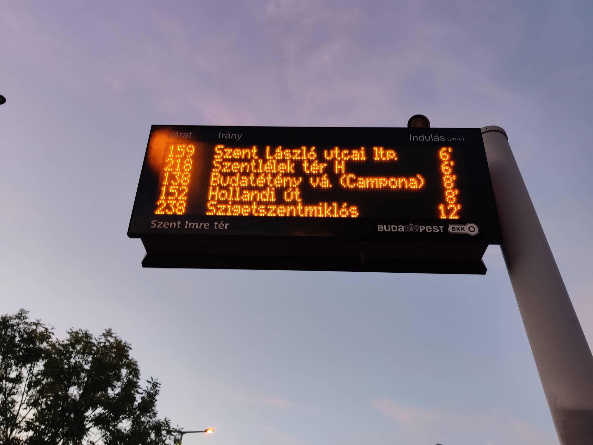 A BKK FUTÁR Csepel Szent Imre téri utastájékoztató tábláján szerepelnek a Pilisborosjenőtől Óbudáig közlekedő 218-as busz indulási adatai is