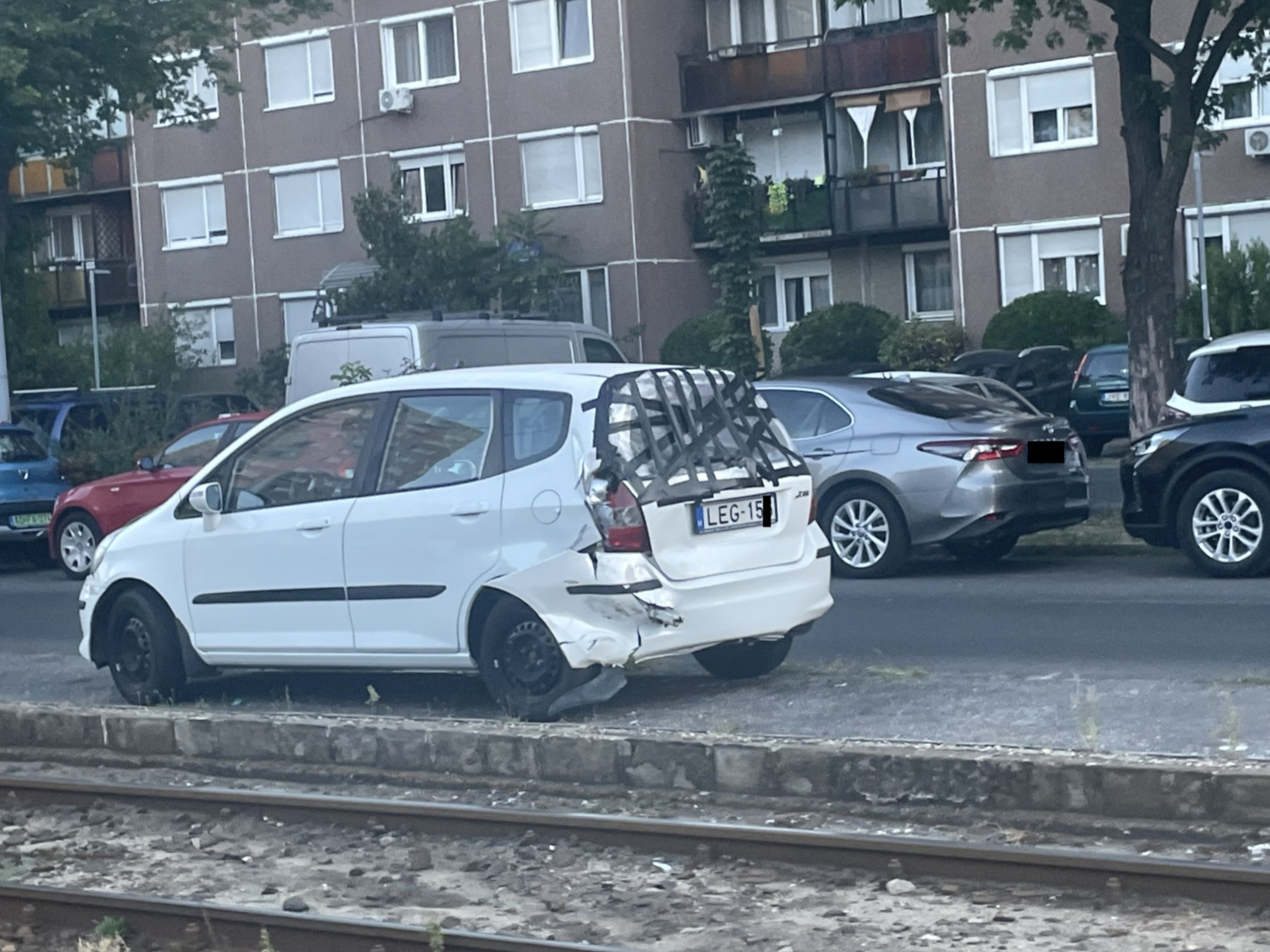 Julius 22.-en tortent villamos balesetben megserult auto. Uzemkeptelen azota nem mozdul.