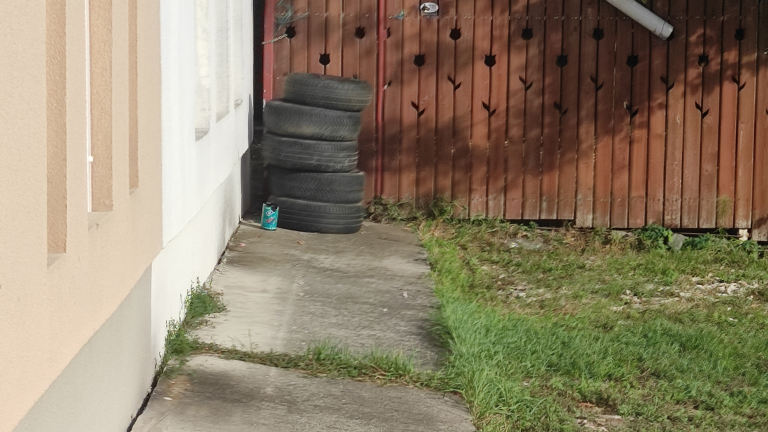 A X. kerületben a Rákosvölgyi közben hónapok óta hevernek elhagyott gumiabroncsok, amik senkihez sem tartoznak ("nem a miénk").