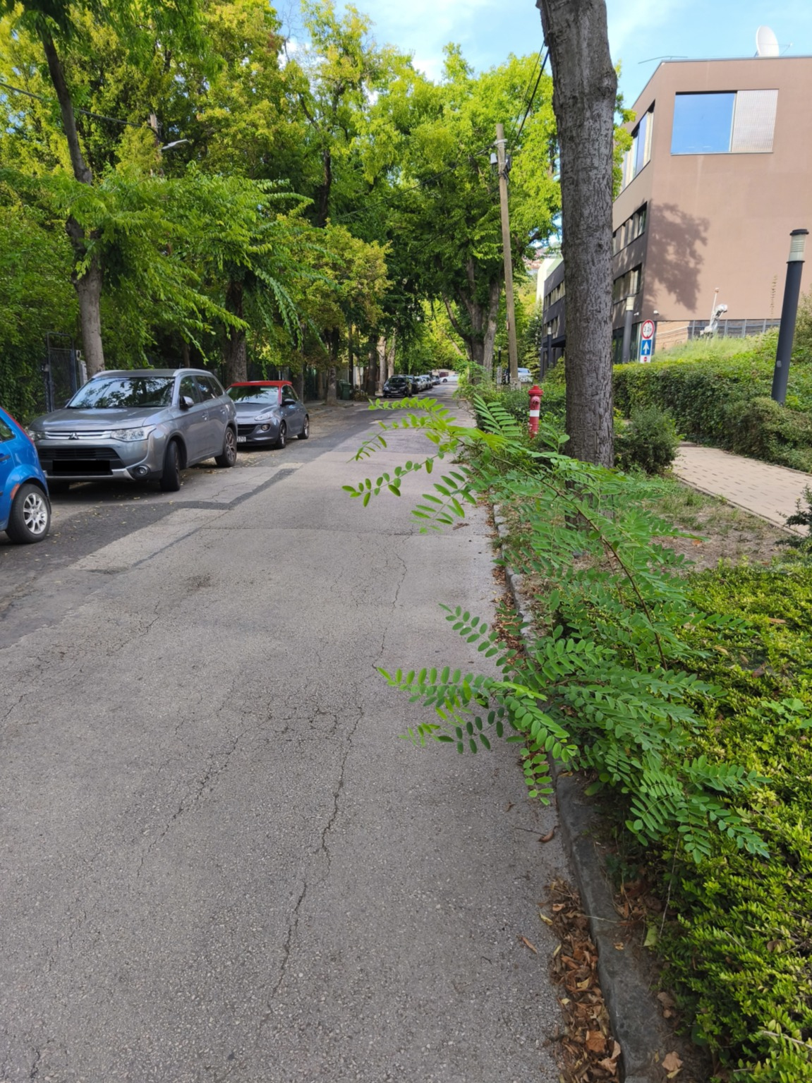 Az utca teljes hosszában vannak belógó ágak a páratlan oldalon, ezek közül több ráadásul szúrós (akác). Különösen kellemetlen, ha kerékpárral megyek itt, és szembeforgalom van. Kérem vágják vissza a belógó ágakat, gallyakat!
