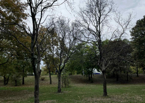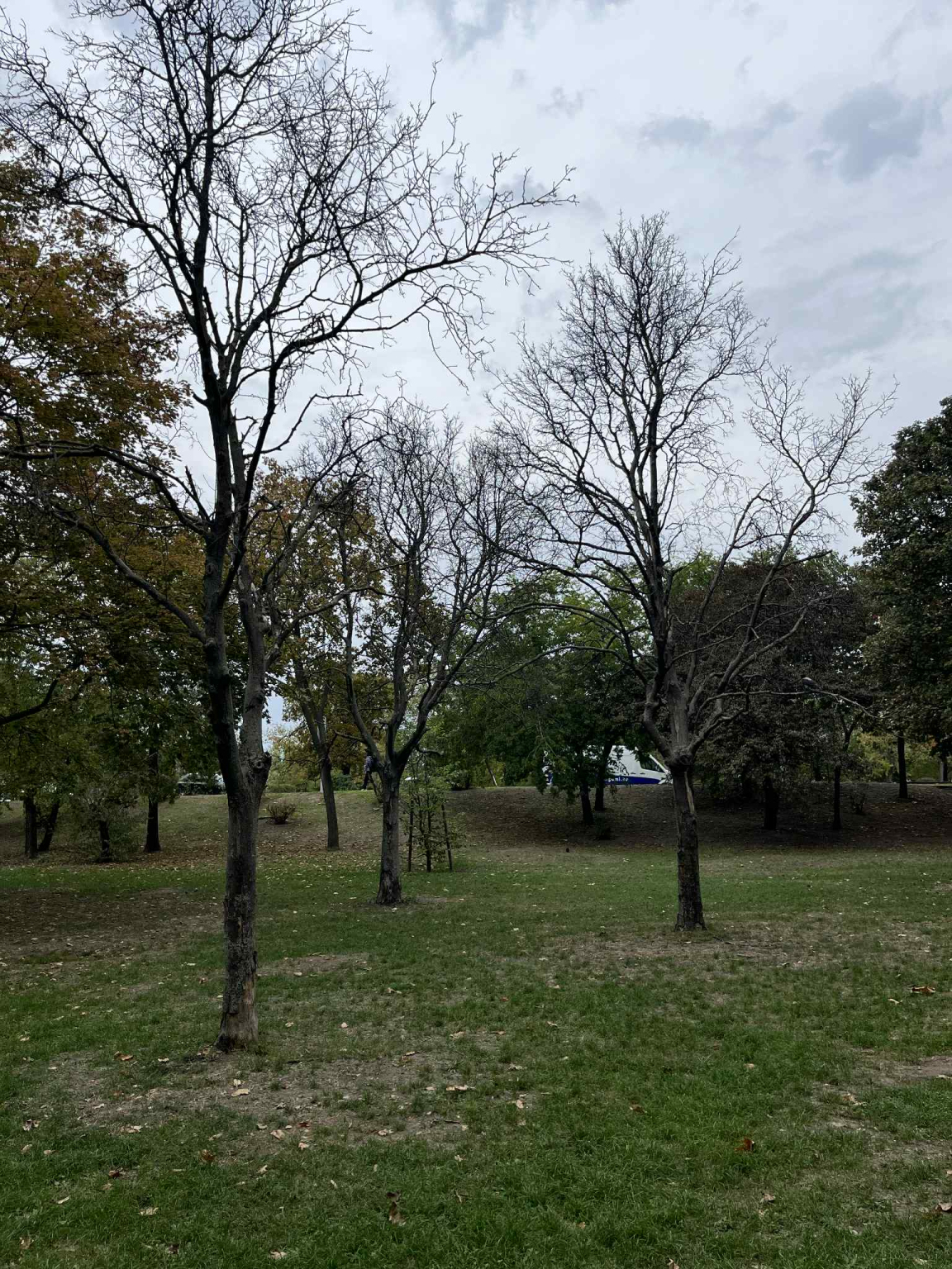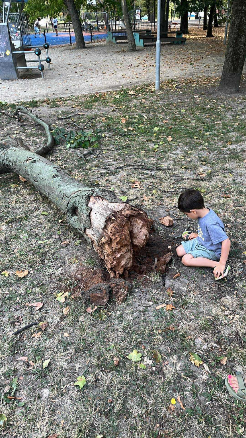 Aug. 22-én dőlt rám majdnem egy termeszette fa. Szóltam a főkertnek, de még mindig ott van, bár valaki elkezdte feldarabolni. Mellette 3-4 hasonló állapotú, totál életveszély. Egyetemisták parkja, kosárpálya mellett.