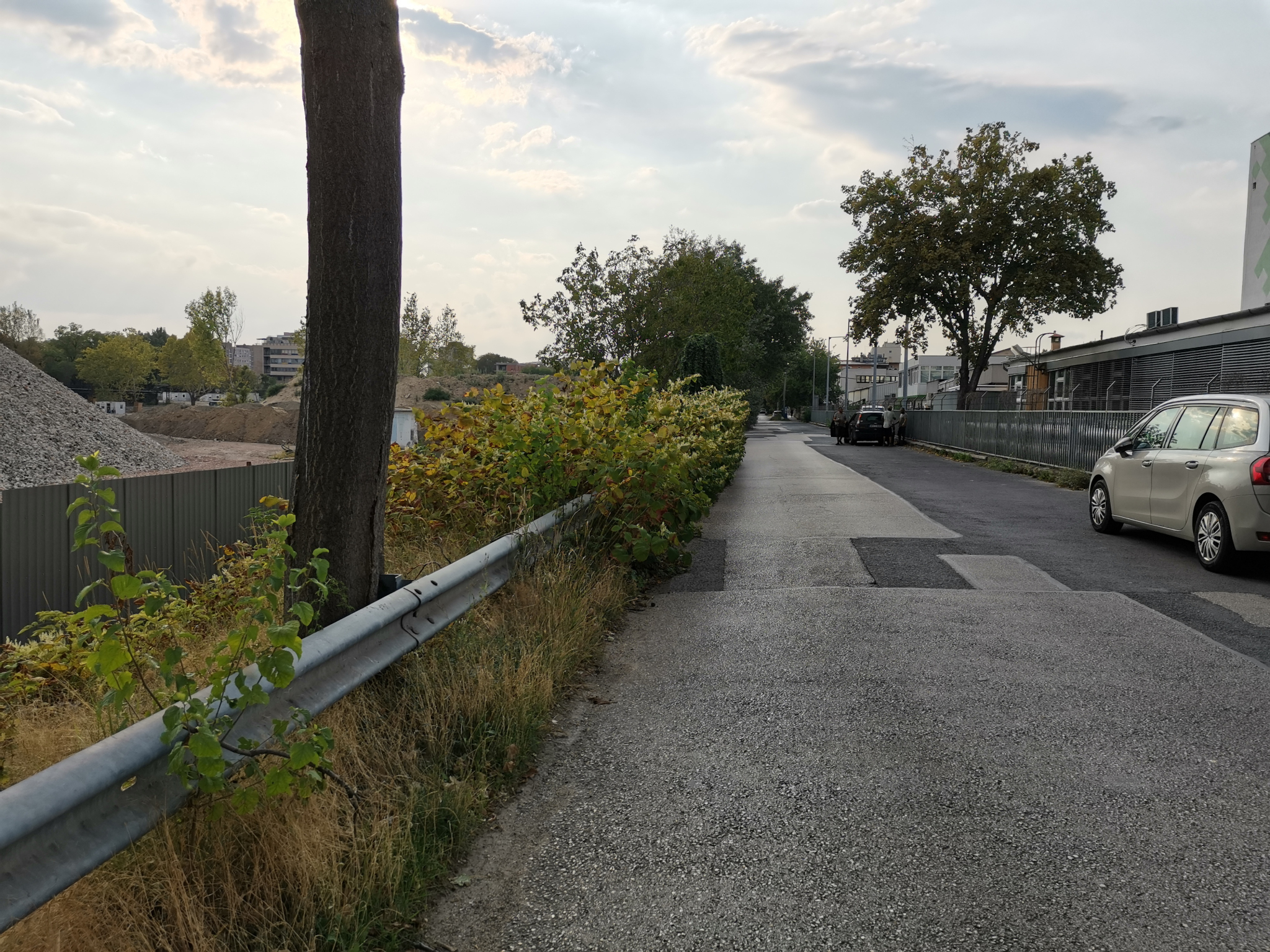 Az arra gyaloglók nevében kérnénk szépen egy visszavágást ezen a szakaszon, hogy legalább a szalagkorlátra tapadva tudjunk biztonságosabban közlekedni. Köszönjük!
