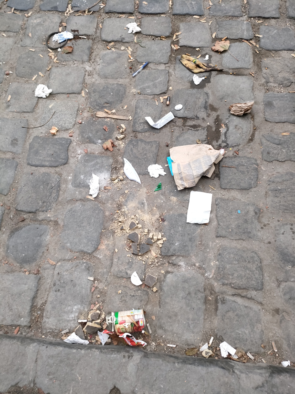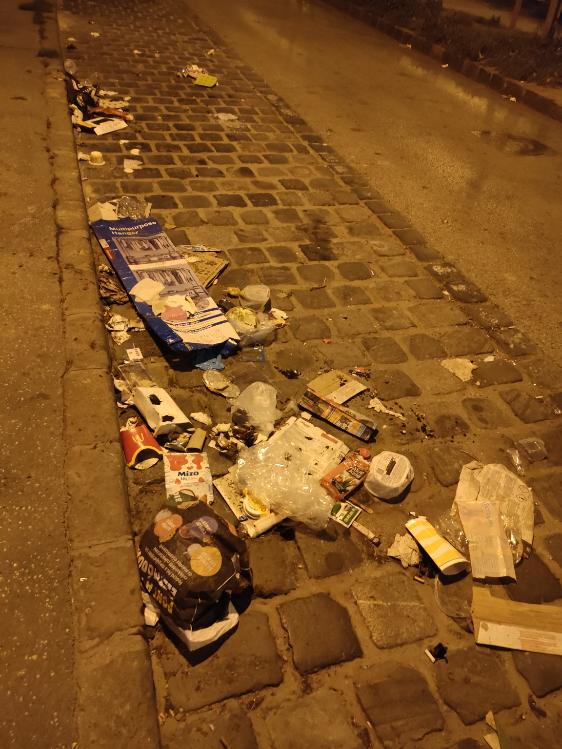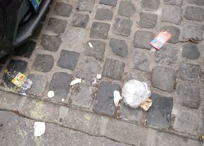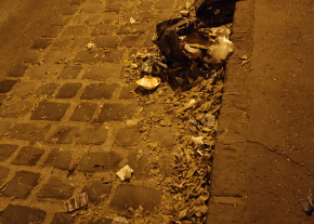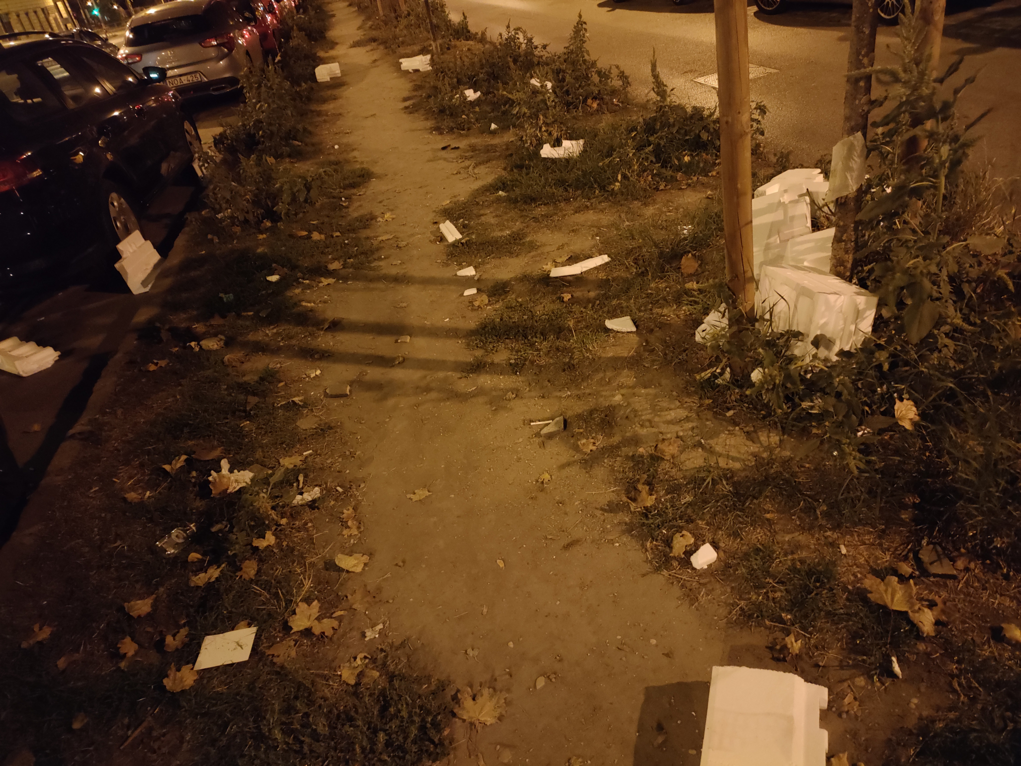 A Baross utca Orczy térhez közeli végén nagyon nagy mennyiségű szemét van a járdán, az autó úton és a macskaköves parkoló sávban is. Van, hogy a szeméthalom/üvegszilánkok konkrétan akadályozzák a leparkolást vagy gyalogos közlekedést.