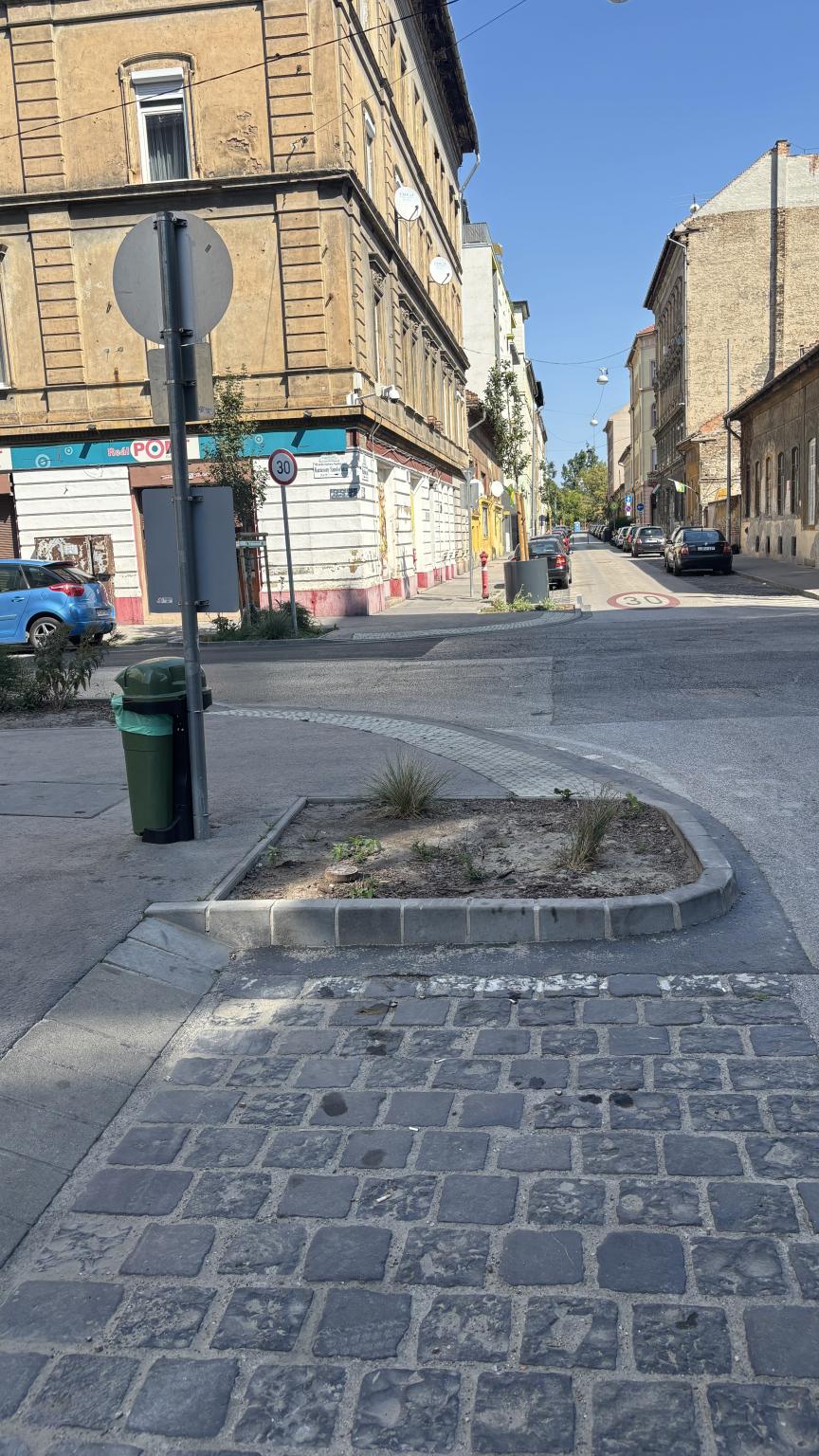 A Magdolna-Lujza sarkon az egyik ágyásból hiányzik a fa. Legyenek szívesek pótolni!