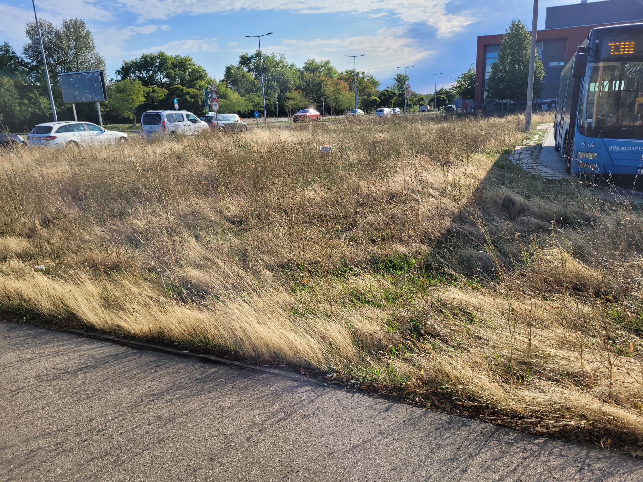 Budatétény Campona buszvégállomásnál idén még nem volt nyírva a fű, helyette gaz burjánzik, hordja a szél a magjait.