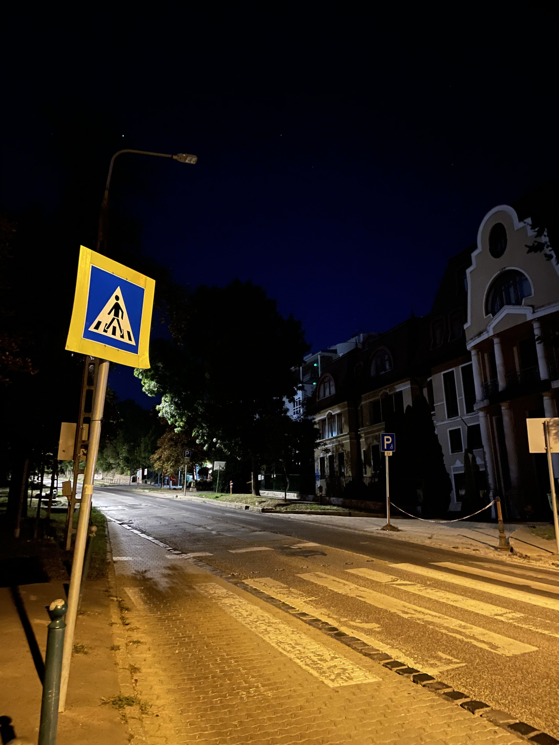 Budakeszi úton, a bíróság épülete előtti zebra felett található közvilágítás nem működik. A zebrát egyébként is nehéz észrevenni sötétben, mert az azt jelző táblát lejtmenetben belógó faágak, ill. villanyoszlop részben takarják.