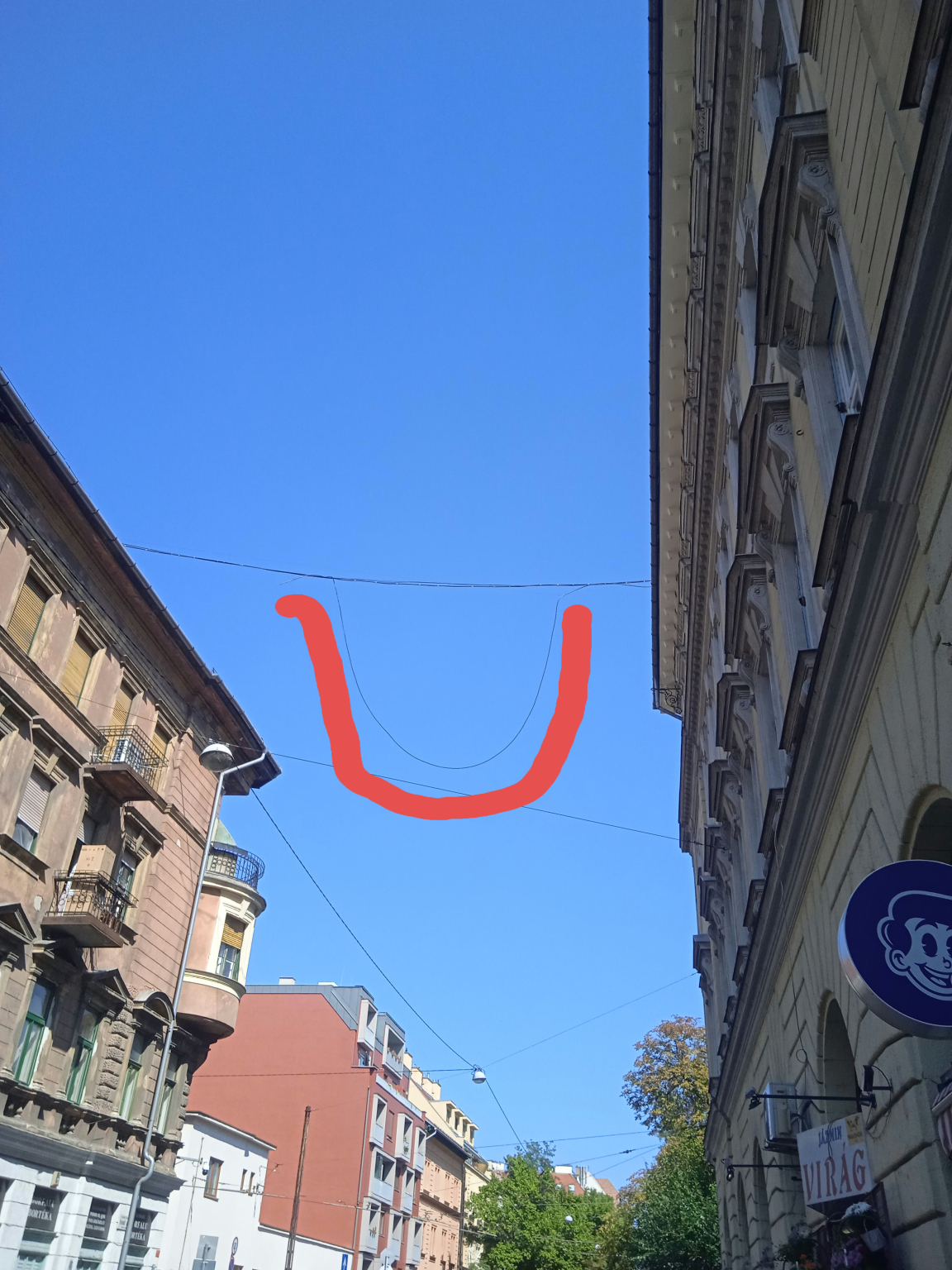 Bp. VI. kerület Szondi és Bajza sarkán a magasban a Szondi utca két oldala között "feszülő" kábel egyik vége elszabadult. A szabad vége beakadt egy drótba, de elég instabil: ha végleg elszabadulna, valószínüleg leérne a földig, ahol sérülést okozhat.