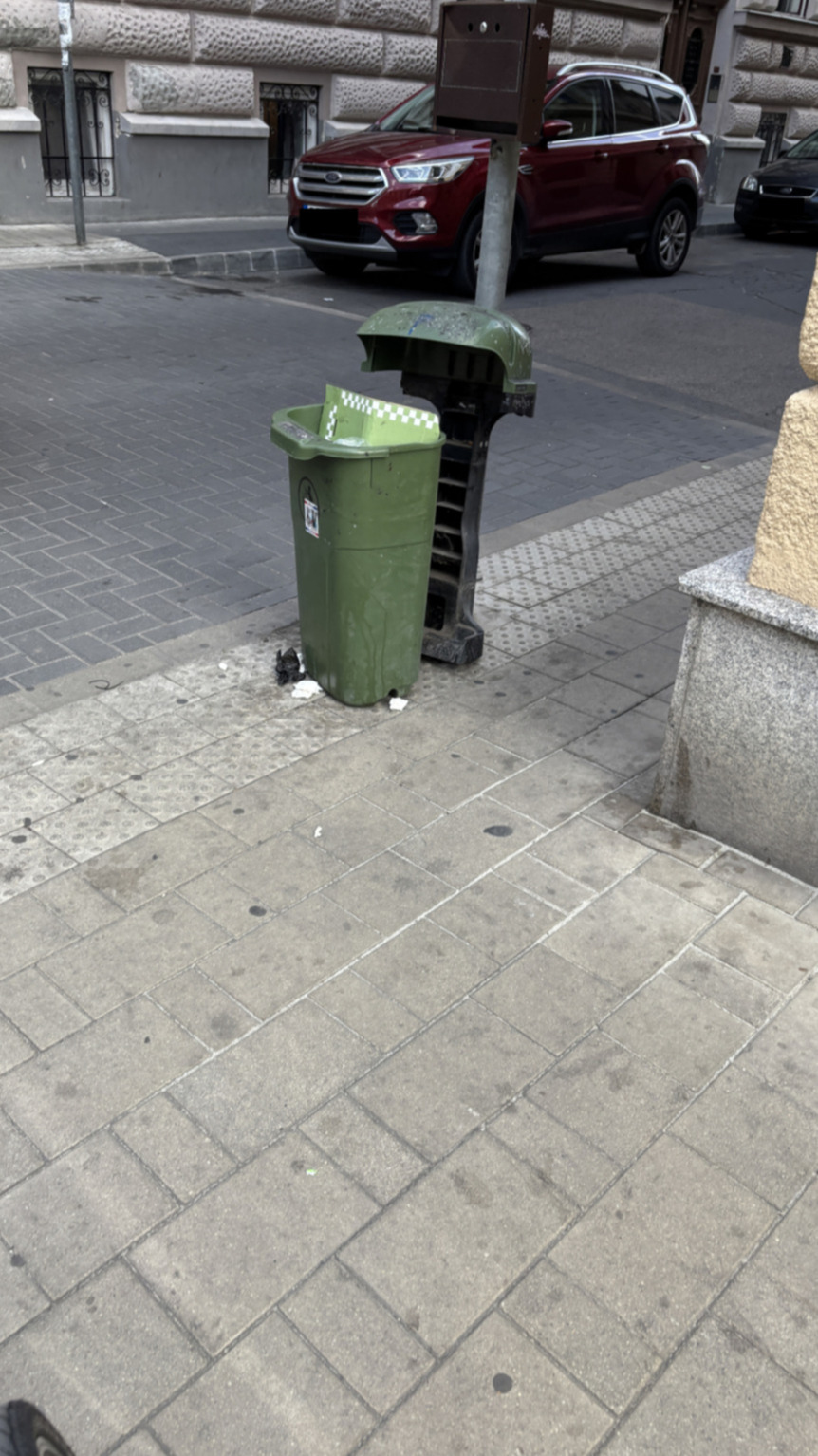 A Déri Miksa - Víg utcák találkozásánál levő szemetes szétesett.
