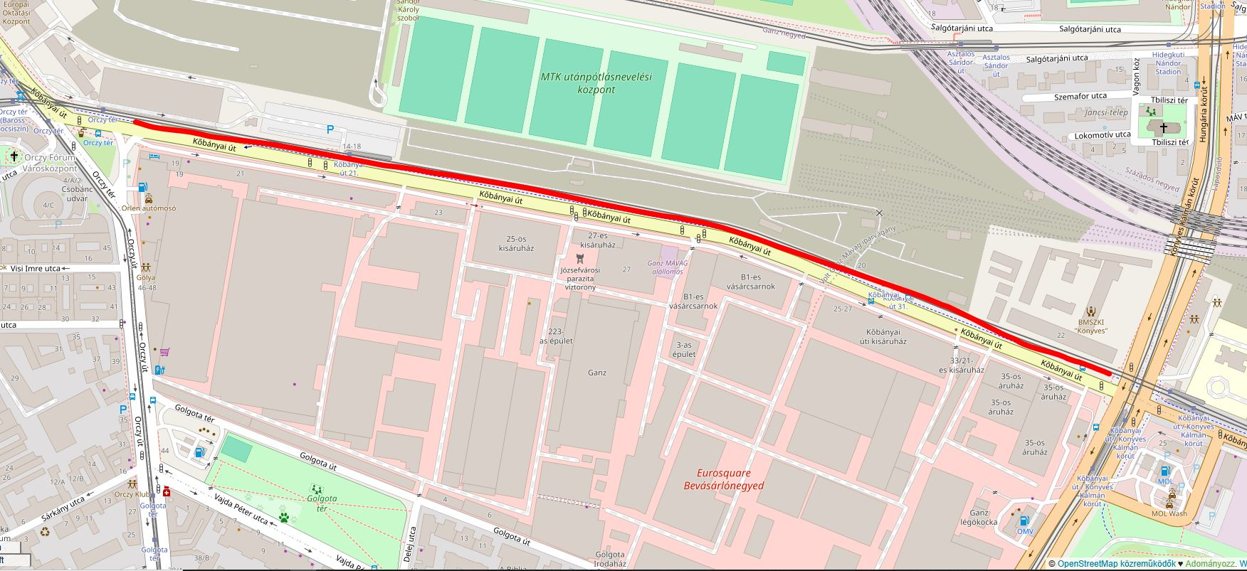 Az Orczy út és a Könyves Kálmán körút között, a Kőbányai út melletti kerékpárúton nagyon sok helyen van törött üveg. Kérem takarítsák fel, defektveszélyes terület. A középső részén a buszmegálló környékén a legrosszabb a helyzet.